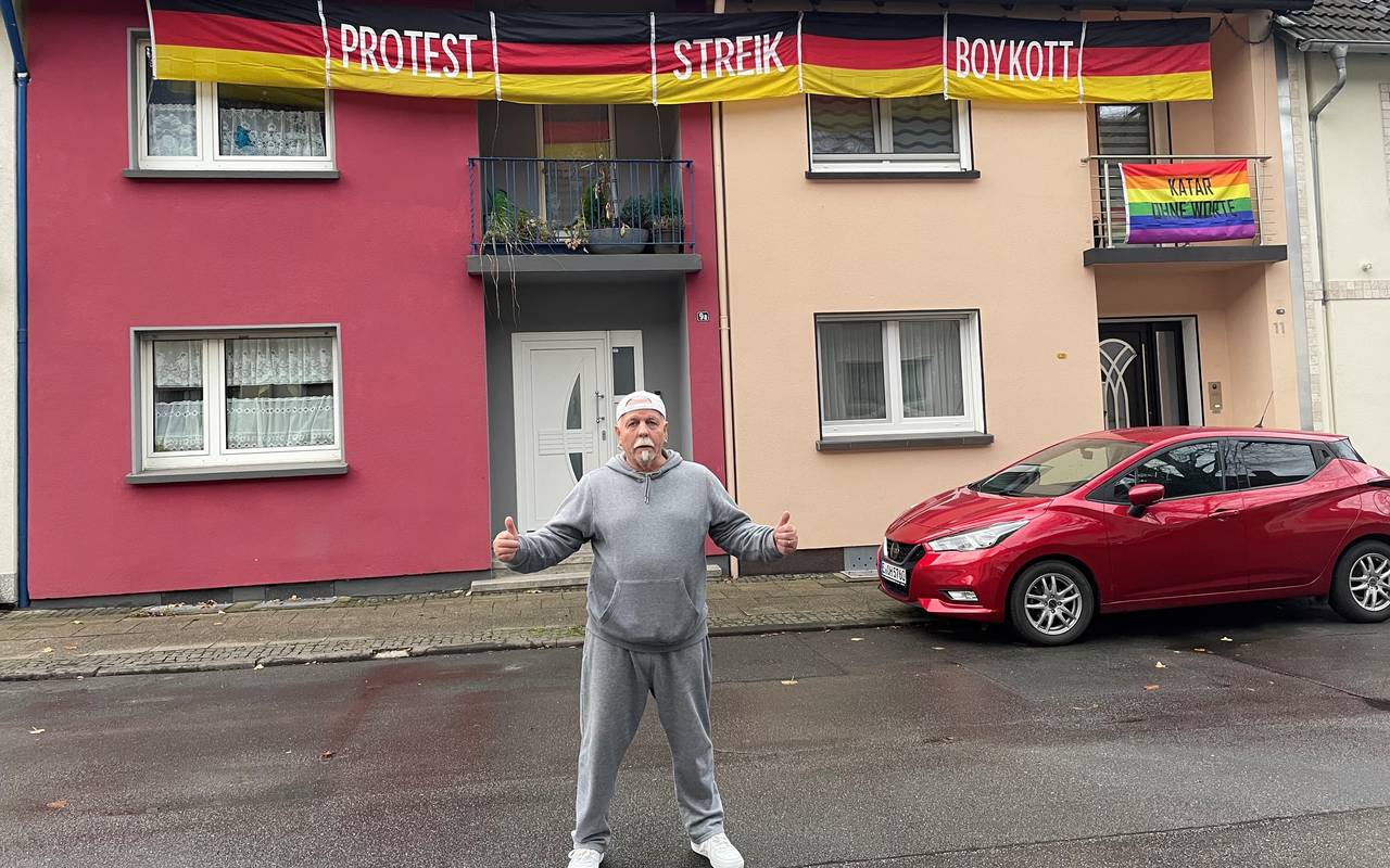 Sonst hat er zu jeder Welt- oder Europameisterschaft die Rullichstraße in Essen-Altendorf zum Strahlen gebracht. Nicht umsonst wird Achim Klimmeck der "Fahnenkönig von Altendorf" genannt. Über die ganze Straße hinweg leuchteten alle zwei Jahre bunte Farben von Flaggen aller Nationen. Doch dieses Jahr ist alles anders. Denn mit dem Austragungsort Katar ist Achim Klimmeck so gar nicht einverstanden. Die Menschenrechtsverletzungen dort haben ihn zum Protest bewegt.