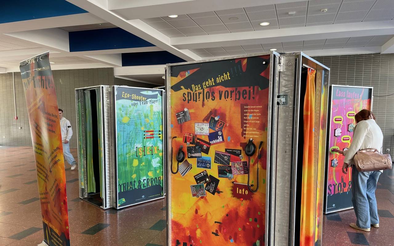 Die fünf Stationen der Ausstellung zum Thema sexuelle Gewalt sind in Essen alle interaktiv. Das heißt, es gibt kurze Videos, Audios, Knöpfe, Klappen und sogar kleine Kabinen. Unter anderem geht es um das Thema Sex im Fernsehen und den Sozialen Medien, wie Jugendliche mit Komplimenten umgehen, vermeintliche Weisheiten rund um das Thema und was rechtlich erlaubt ist und was nicht. Alle Klassen des Robert-Schumann- und des Erich-Brost-Berufskollegs haben die Chance in den nächsten Tagen "Echt krass!" kostenlos zu besuchen. Die Erlebnisausstellung ist zum ersten Mal in Essen. Die Ausleihgebühren und der Transport wurden finanziert durch die Fördervereine der Berufskollegs.
