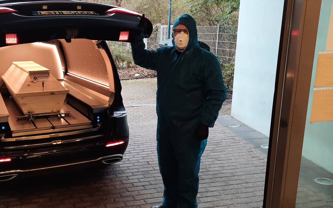 Aktuell hat das Krematorium in Essen ähnlich viel zu tun, wie sonst auch, daran ändert auch Corona kaum etwas. Allerdings sind gerade zwei von drei Öfen kaputt. Techniker versuchen, die zwei kaputten Öfen zu reparieren. Das kann aber dauern. Die Öfen waren 1200 Grad heiß und mussten erst abkühlen. Jetzt sind sie kalt und die Techniker können gucken, was genau kaputt ist. Damit es keine Engpässe gibt, werden einige Essener im Dortmunder Krematorium eingeäschert. Einige werden aber auch zu einem privaten Krematorium in den Taunus gefahren. Die Urne mit der Asche kommt nach zwei, drei Tagen zurück nach Essen.