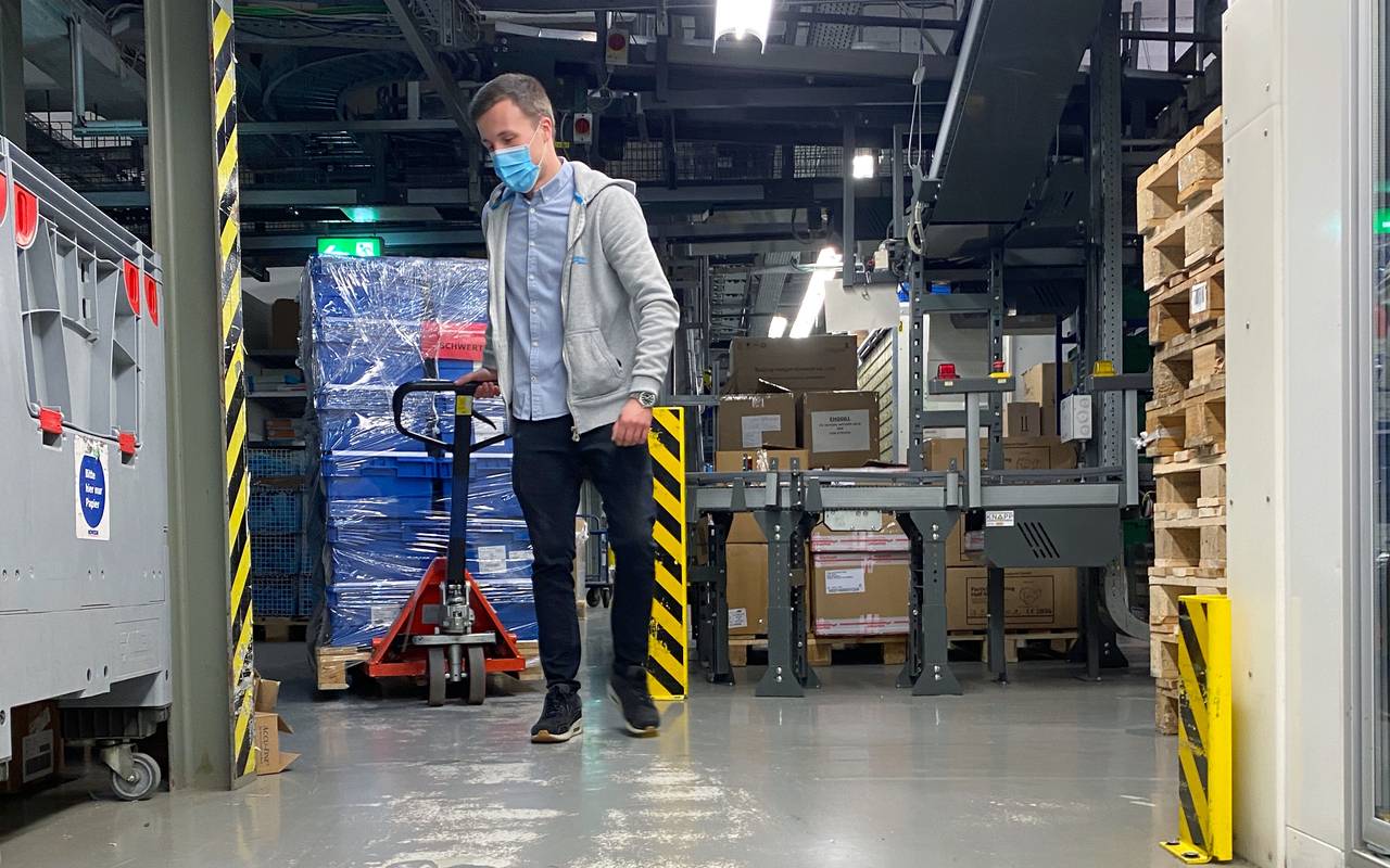 In Essen-Altendorf machen die Mitarbeiter beim Pharmagroßhändler NOWEDA gerade Extrastunden, um den Coronaimpfstoff für die Arztpraxen auszuliefern. Die Frühschicht hat heute drei Stunden früher begonnen, damit alles pünktlich ankommt.