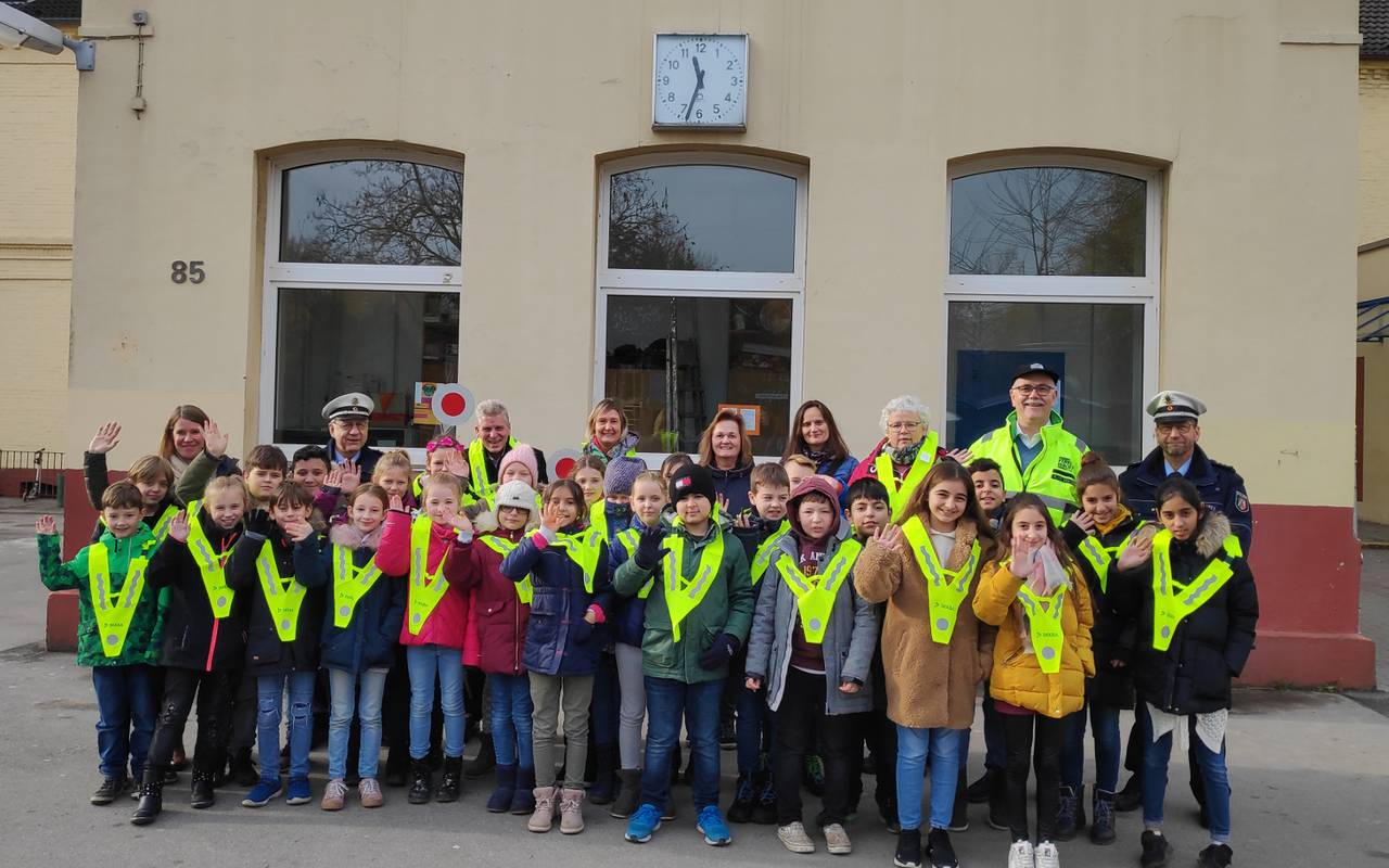 An der Karlschule in Altenessen wird Verkehrssicherheit schon den Kleinsten beigebracht. Das ist hier auch besonders wichtig, immerhin liegt die Schule genau zwischen den beiden Hauptstraßen Wilhelm-Nieswandt-Allee und Altenessener Straße. Das heißt, bei jedem Schulweg müssen die Kids besonders aufpassen, um nicht von einem Auto übersehen zu werden. Damit das noch besser klappt, haben die Schüler der Karlschule und Kinder des Förderturms e.V. heute von der DEKRA und der Verkehrswacht Essen reflektierende Warnkragen bekommen. Die können sich die Kinder wie einen Schal über die Jacke hängen und sind dann so besser zu sehen. Die Schule nutzt die Kragen vor allem bei Schulausflügen. Die meisten Kinder haben für den Schulweg auch zusätzliche Warnwesten.