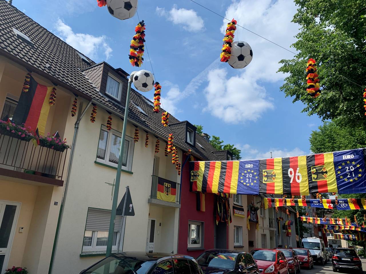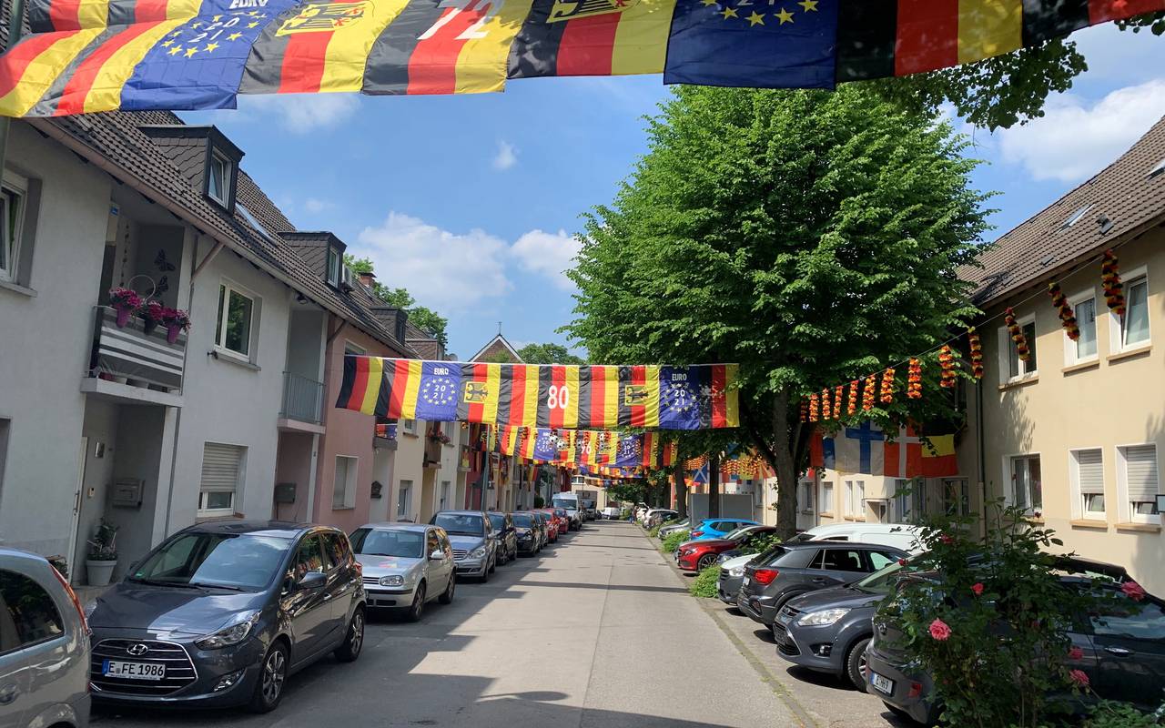 Ihr seid noch nicht im EM-Fieber? Dann fahrt doch einmal durch die Rullichstraße in Altendorf. Achim Klimmeck hat mit seinen Nachbarn die Straße wieder einmal in Schwarz-Rot-Gold eingekleidet und ist damit schon deutschlandweit bekannt geworden.