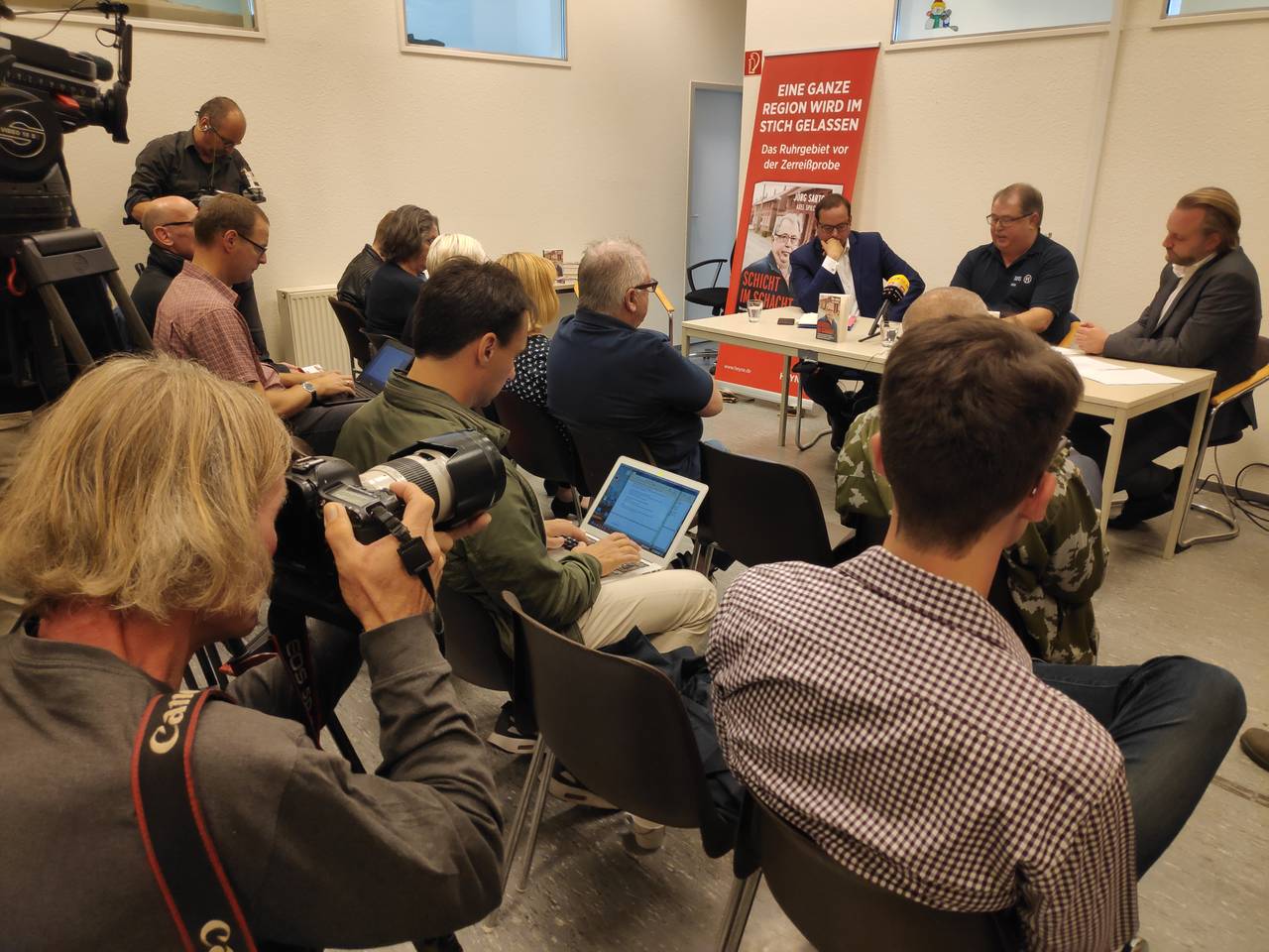 Bei der Buchvorstellung war es ziemlich voll. Viele Journalisten und auch Essens Oberbürgermeister Thomas Kufen sind gekommen, um über das Buch zu sprechen. Thomas Kufen findet das Buch gut, so könnten auf die Themen, die im Ruhrgebiet anliegen, wie Langzeitarbeitslosigkeit oder Zuwanderung, noch einmal aufmerksam gemacht werden.
