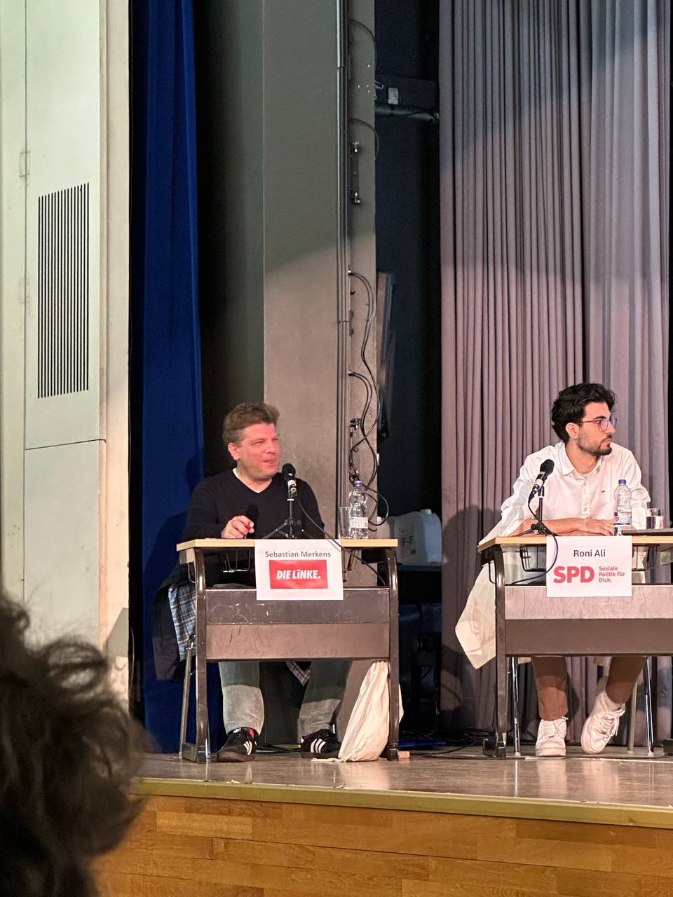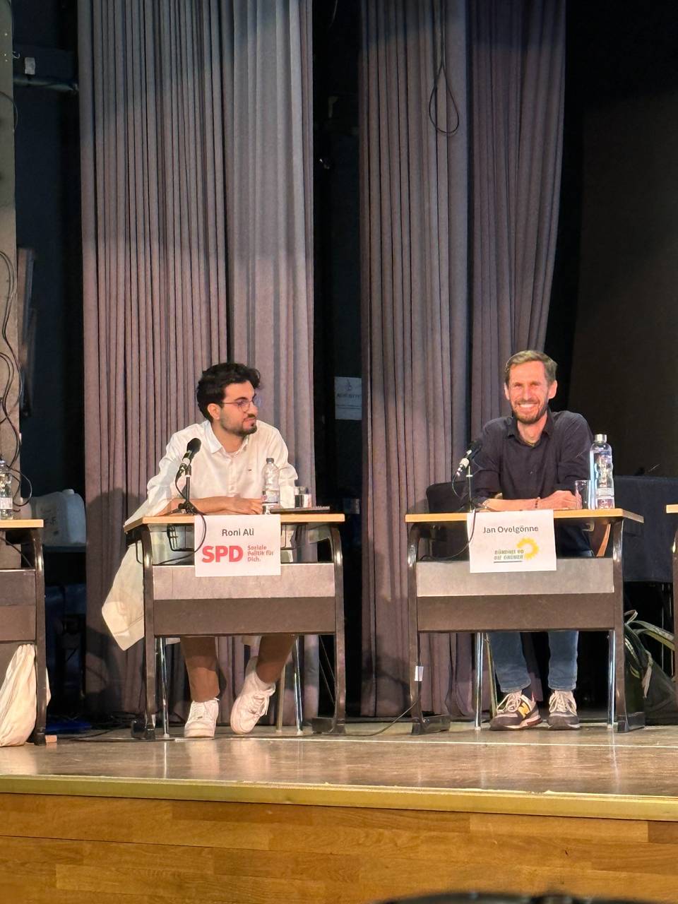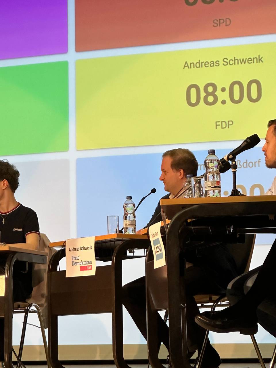 Am Gymnasium Essen-Werden gab es am 7. Mai - extra zum Thema Europawahl - eine Podiumsdiskussion in der Aula. Sechs Politiker der großen Parteien waren dort und haben auf der Bühne über aktuelle Themen diskutiert. Die Schülerinnen und Schüler haben so einen Eindruck der Meinungen von den Politikern bekommen und konnten im Anschluss sogar noch Fragen stellen. Es ging viel um Energie- Asyl- und Militärpolitik. Die Politiker von CDU, SPD, Grünen, FDP, Linken und der AfD hatten jeweils 5 Minuten Redezeit und konnten von Ihren Plänen für die Europapolitik berichten.