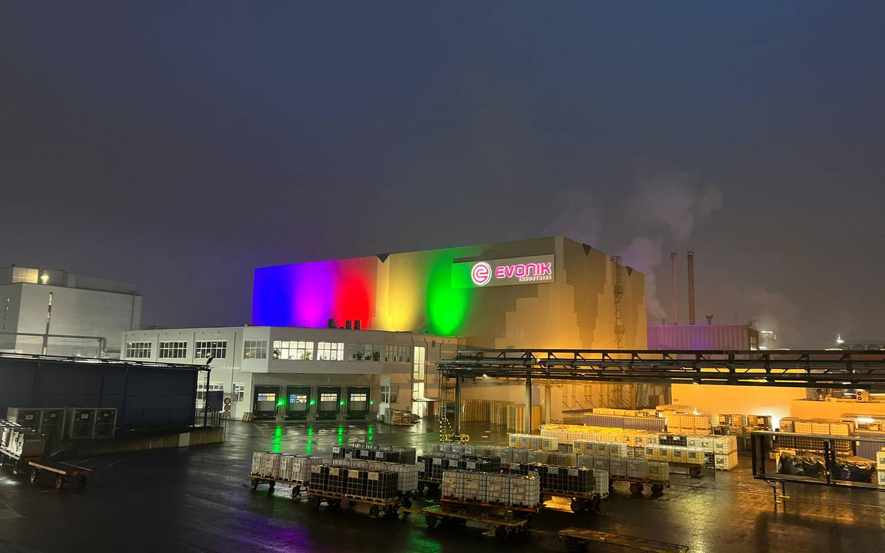 Wenn es in Essen anfängt zu dämmern, leuchtet das Zentrallager des Konzerns Evonik an der Goldschmidtstraße im Ostviertel in mehreren Farben auf. Grün, gelb, rot, blau und lila sind die Farben, für die sich der Konzern entschieden hat. Die Aktion entstand im Rahmen der internationalen Wochen gegen Rassismus. Das bunte Aufleuchten des Zentrallagers soll für Toleranz, Offenheit und Vielfalt stehen.