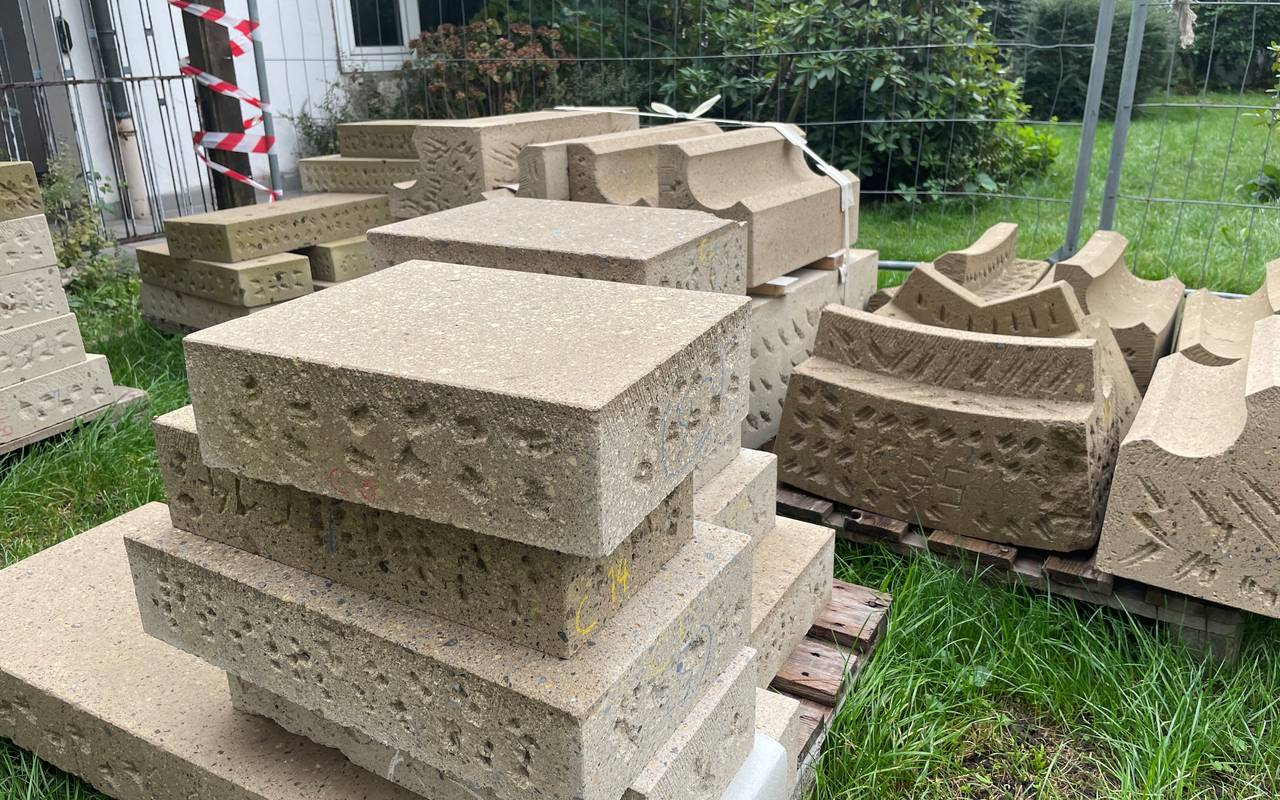Die Fassade der denkmalgeschützten, über 100 Jahre alten Kirche in Essen, besteht aus beigem Tuffstein. Diese Steine sind mittlerweile stark verwittert, zumindest auf der Wetterseite der Kirche. Also, der Seite, die den meisten Regen abbekommt. Bei der letzten Sanierung in den 1970er Jahren war es Stand der Technik die Tuffsteine zu hydrophobieren - also mit einem speziellen Mittel einzustreichen, das Wasser abweist. Das Problem dabei: Wenn irgendwo mal ein Stück vom Stein abbricht oder eine Fuge nicht mehr in Ordnung ist, kommt das Wasser in den Stein rein, aber nicht mehr raus. Sobald es friert, platzen die Steine auf. Deswegen sind gerade auf der Wetterseite der Kirche viele Steine kaputt und müssen ersetzt werden. Die neuen Tuffsteine nehmen das Wasser auf und geben es wieder ab. Deswegen sind sie bei Regen dunkler, als die alten Steine. Das macht aber nichts, sagt Max Hüls vom Kirchenvorstand der Pfarrei St. Lambertus. Denn die unterschiedlichen Steine sind auf gegenüberliegenden Seiten. Man sieht sie also nur selten zusammen.