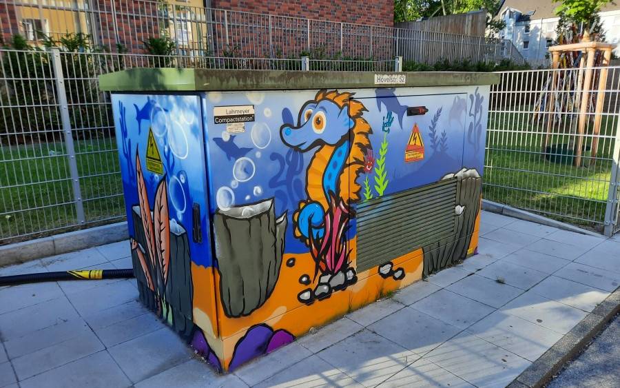 Die Stromkästen in Essen sind grau, langweilig und oft dreckig. Auf der Hövelstraße haben einge Schüler das jetzt geändert.