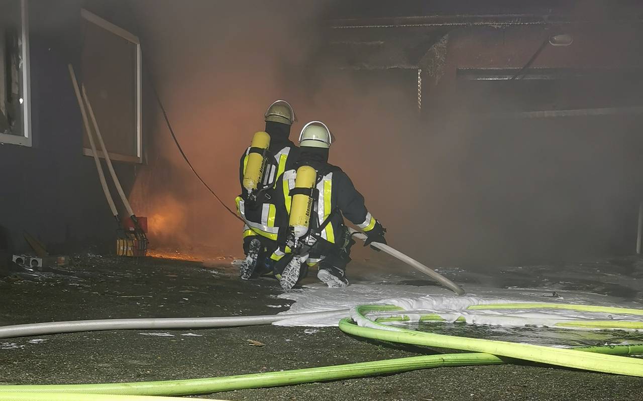 Die betroffenen Garagen werden wohl unter anderem als Hobbywerkstatt genutzt und brannten vollständig aus. Sie werden am Vormittag ausgeräumt und der brennende Inhalt abgelöscht. Auch Teile der Dachkonstruktion müssen weiter entfernt werden. Alle anderen der insgesamt elf Garagen wurden von der Feuerwehr Essen gewaltsam geöffnet und kontrolliert. Auch hier war bereits starker Brandrauch eingedrungen.