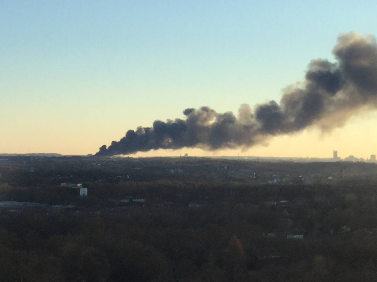 Schon kurz nach Ausbruch des Feuers erreichten uns viele Anrufe und Bilder von Hörern, die sich Sorgen machen. Auch in einigen Bereichen unserer Nachbarstädte ist die Rauchsäule zu sehen. Bilder erreichen uns unter anderem aus Marl und Oberhausen.