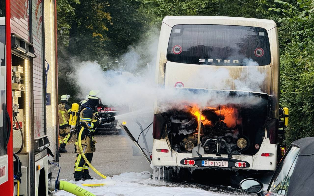 Reisebus in Essen in Brand - Feuerwehr im Einsatz