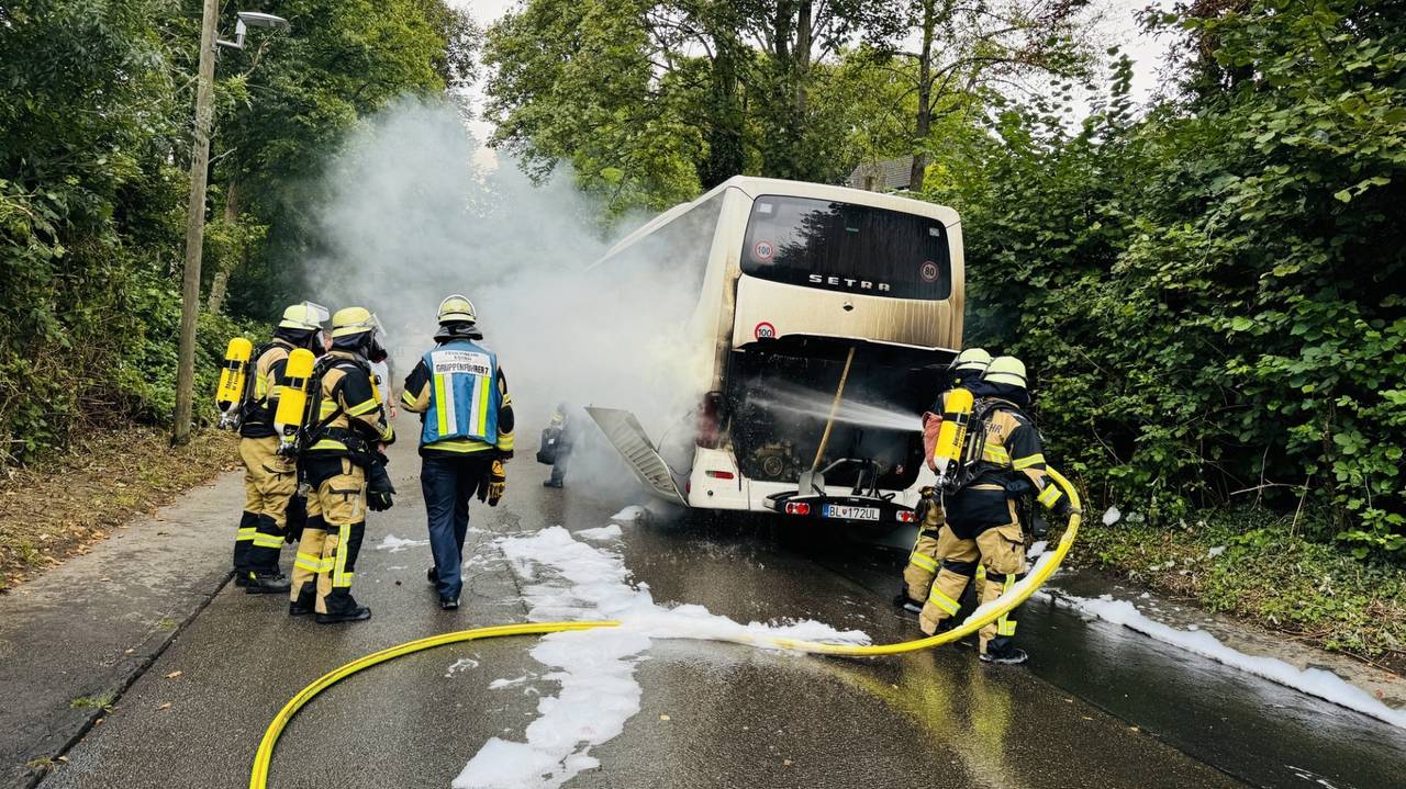 Die Feuerwehr Essen musste am Sonntagmorgen (8. September) einen brennenden Reisebus löschen. Die Freiwillige Feuerwehr Steele kam zur Unterstützung dazu.