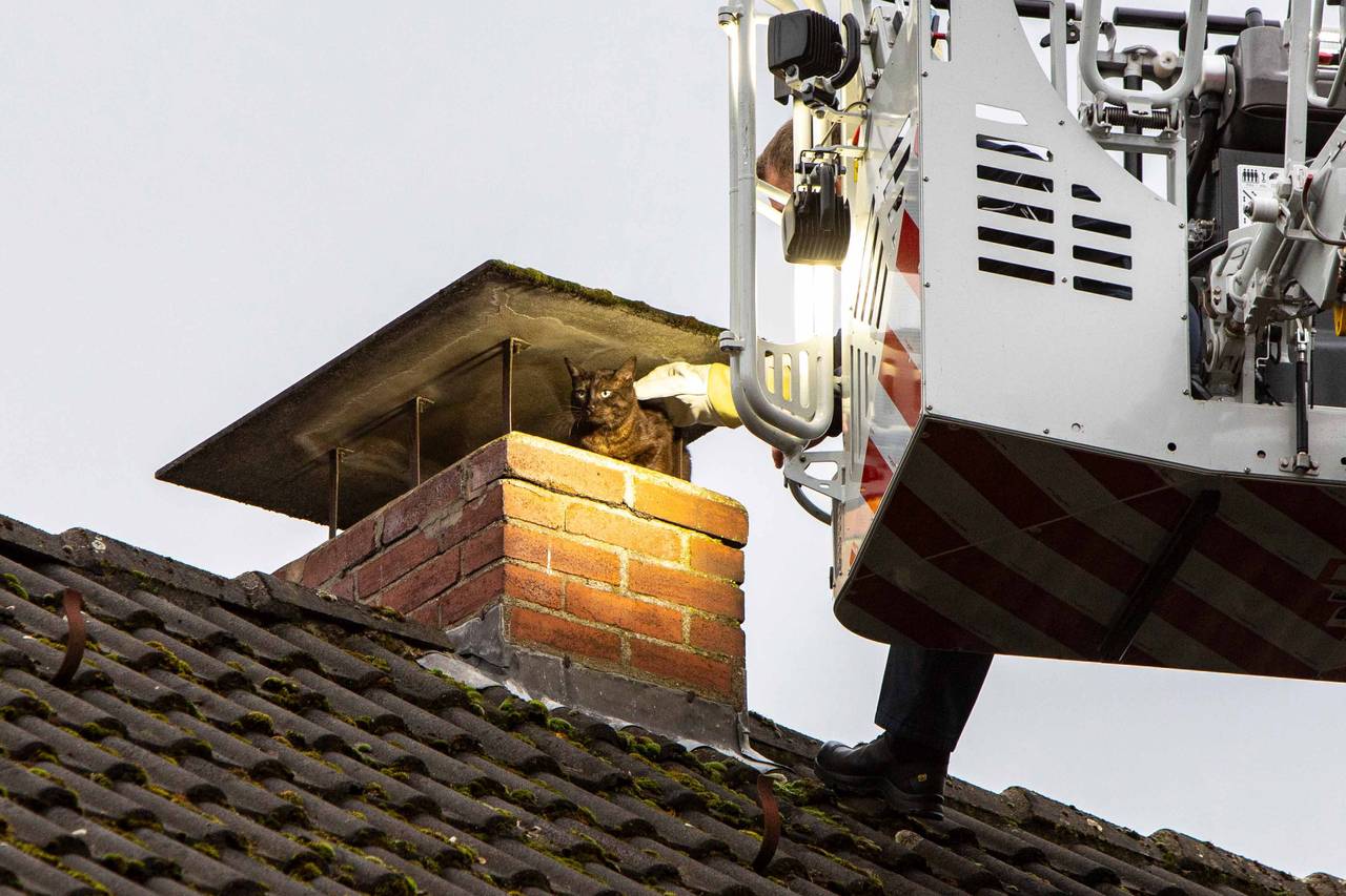 Wie im Bilderbuch: Am Sonntagnachmittag (11.02.) musste die Essener Feuerwehr einen Kater vom Dach retten. Nacho hat es gut überstanden.