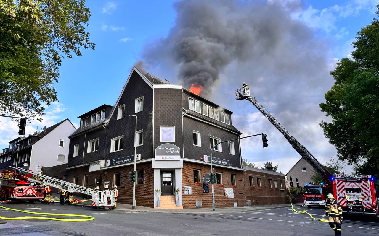 Bei dem Feuer in Essen wurden die Bewohnerinnen und Bewohner des Hauses überrascht. Auf einem Balkon ist das Feuer wohl ausgebrochen und hat schnell auf den Dachstuhl übergegriffen. Der Bewohner der Wohnung im ersten Obergeschoss wurde durch die Schreie seiner Frau geweckt, die das Feuer bemerkt hatte. Das Paar ist sofort aus der Wohnung gestürmt und konnte sich ins Freie retten. Eine Etage höher hatte ein Mann in seiner Ferienwohnung geschlafen, bis er plötzlich vom Rauchmelder und den Schreien der Nachbarn geweckt wurde. Er versuchte noch durch das Treppenhaus nach draußen zu kommen, hatte aber durch das Feuer keine Chance mehr. Die Feuerwehr musste den Mann mit einer Drehleiter aus dem Dachgeschoss retten. Durch das Feuer haben vier Bewohner eine Rauchgasvergiftung erlitten. Sie wurden vor Notarzt behandelt, wollten aber nicht ins Krankenhaus gebracht werden.