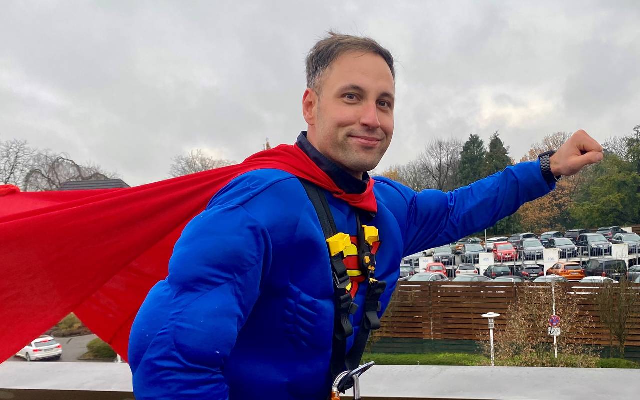 In Essen sind der Nikolaus, Superman, Batman und Eiskönigin Elsa vom Dach geklettert. Die Superhelden haben Kinder im Krankenhaus überrascht.