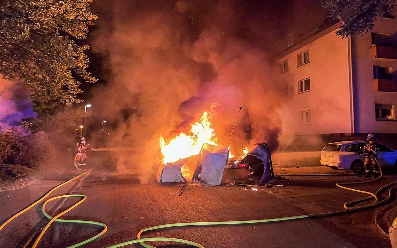 Feuerwehr in Essen: Transporter und Auto brennen in der Nacht