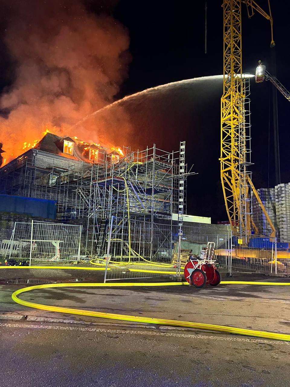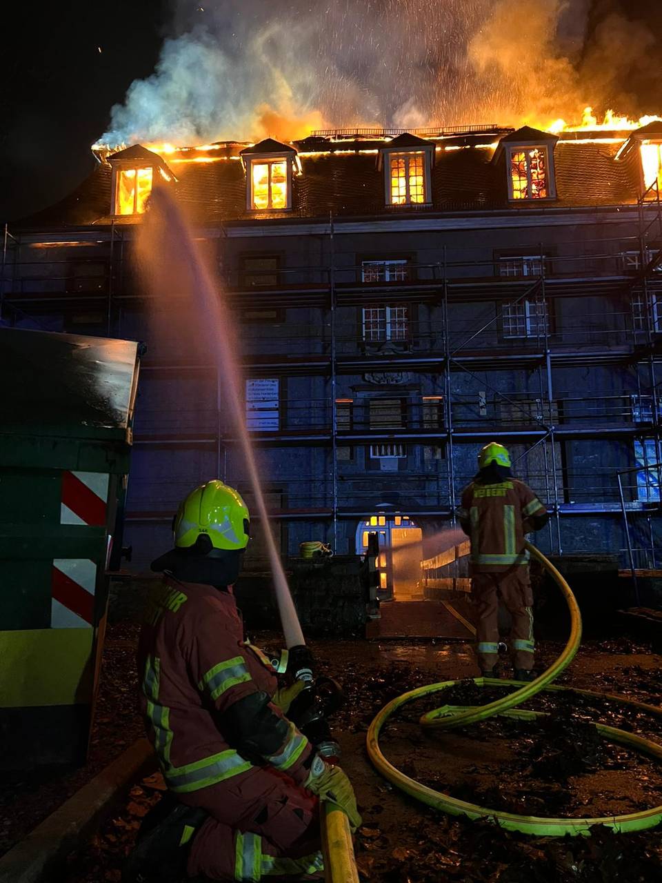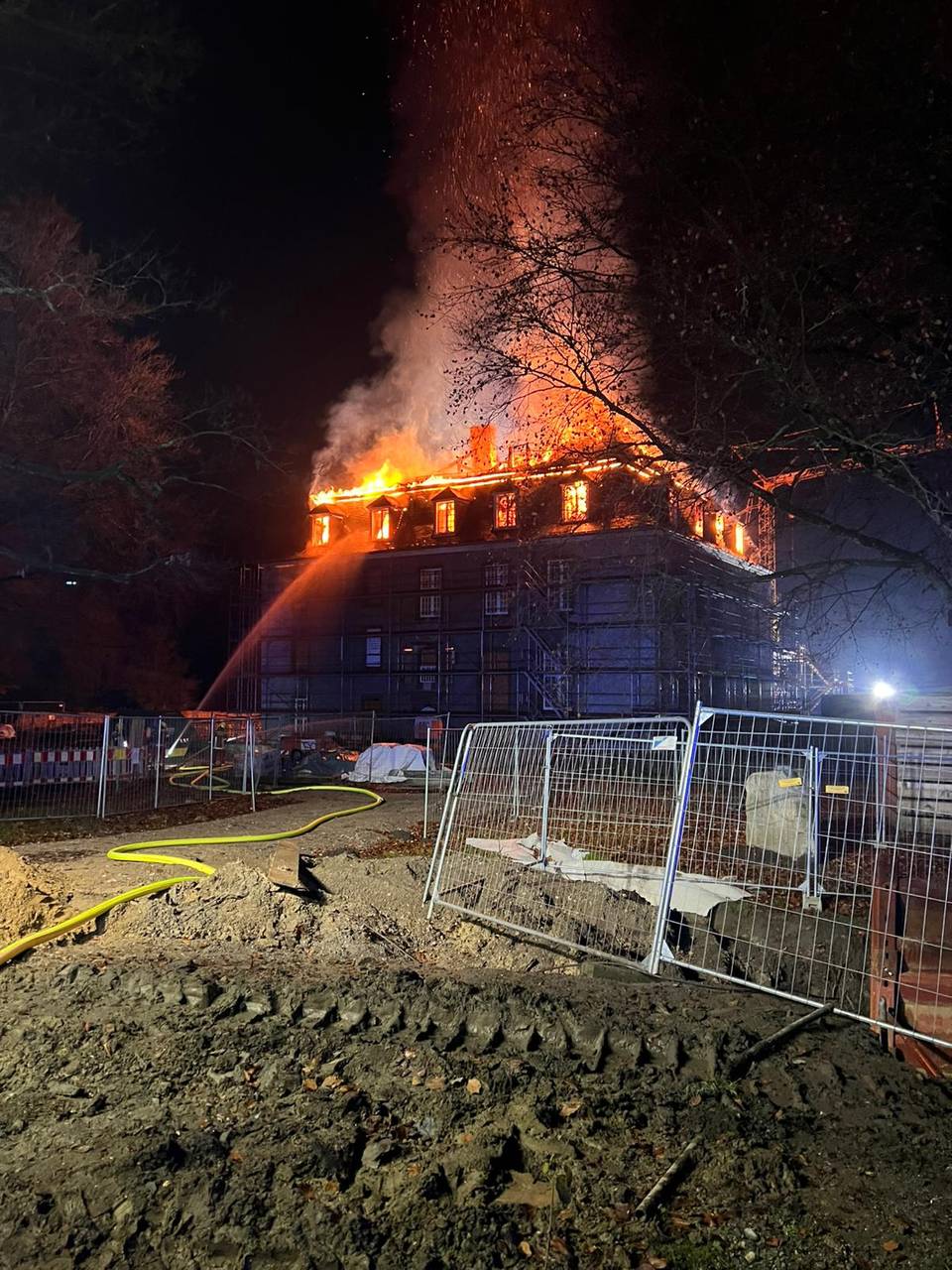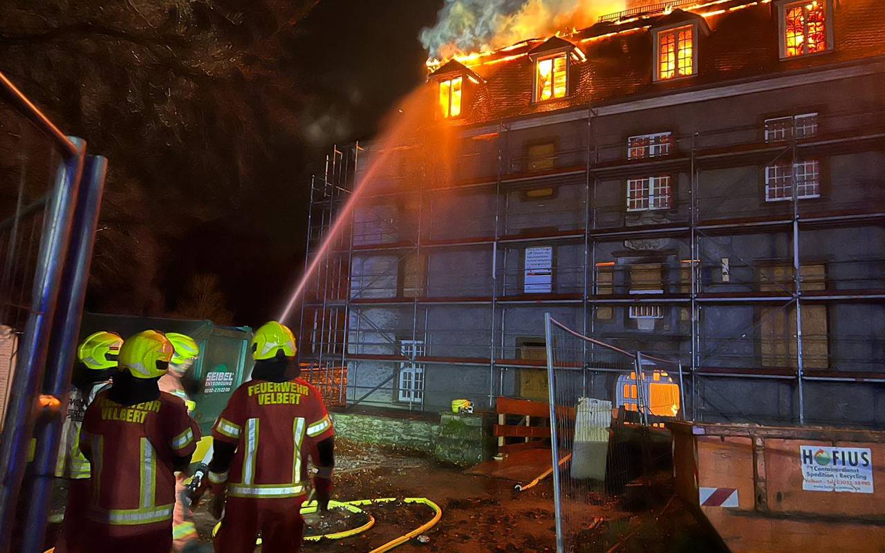 In der Nähe von Essen brennt ein Schloss lichterloh. Der Dachstuhl von Schloss Hardenberg in Velbert-Neviges steht in Flammen.