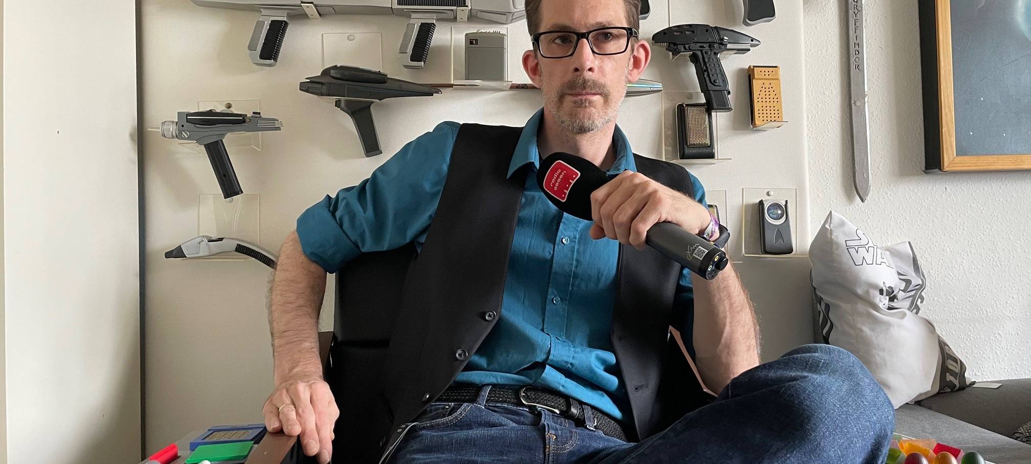 Er hat Radio Essen-Stadtreporter Timm Schröder in seiner Dachgeschosswohnung in Rüttenscheid empfangen. Dort in der dritten Etage steht der Kommando Stuhl von Captain Kirk direkt neben einem ganz normalen Sofa. 120 Arbeitsstunden und ganz viel Liebe zum Detail stecken in dem grau bezogenen Stuhl mit den vielen Schaltern und Lämpchen. Auch der passende Sound darf nicht fehlen. Seit über 30 Jahren ist Marcus Stock ein echter Trekkie. Seine Miniatur-Raumschiffsammlung passt schon lange nicht mehr in die große Vitrine im Wohnzimmer. Der Rest der über 1.200 Stücke lagert in großen Kisten in der ganzen Wohnung verteilt. Geschätzt 40.000 Euro hat er schon in sein Hobby gesteckt und mit dieser Vorliebe für Weltraumabenteuer ist er nicht allein. Regelmäßig trifft er sich mit Gleichgesinnten beim Trekdinner Ruhrpott Stammtisch.