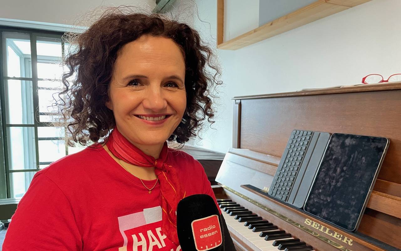 Für Happy Song in der Folkwang Musikschule ist Carola Laux genau die Richtige. Im Interview mit Radio Essen-Stadtreporter Timm Schröder strahlt sie ganz viel positive Energie aus. Sie sagt: die meisten von uns können singen, aber viele denken, sie können es nicht. Dabei sollten wir uns mehr trauen, denn Carola ist der festen Überzeugung, dass singen glücklich macht. Im Repertoire hat sie dafür ganz viele positive Songs. Es braucht aber keine eigenen Songs, auch das Mitsingen von Songs im Radio macht glücklich. Für uns hat sie zwei ihrer eigenen Songs kurz angesungen. Bei den Veranstaltungen stellt sie sich individuell auf die Teilnehmerinnen und Teilnehmer ein. Ihr Ziel: alle sollen danach ein wenig glücklicher sein.