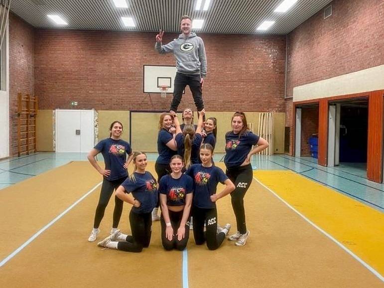 Wie viel die Cheerleader der Assindia Cardinals Essen leisten, hat unser Radio Essen-Stadtreporter Mario Arlt beim Interview mit dem Team gemerkt. Vollkommen selbstverständlich wollten sie ihn zu einer Pyramide hochgeben. Es gab klare Ansagen, "halt dich an den Schultern fest, ich zähle bis drei und dann springst du auf die Hände der Mädels und bleibst gebeugt stehen", sagt Trainerin Michelle Rohde. Gesagt, getan, und schon stand unser Reporter auf den Händen. "Ich zähle runter, und dann drückst du dich einfach gerade hoch", lautete die nächste Anweisung. Schon stand unser Reporter, von vier Cheerleadern gehalten, in der Luft. Am Anfang noch etwas wackelig, aber dann doch souverän.
