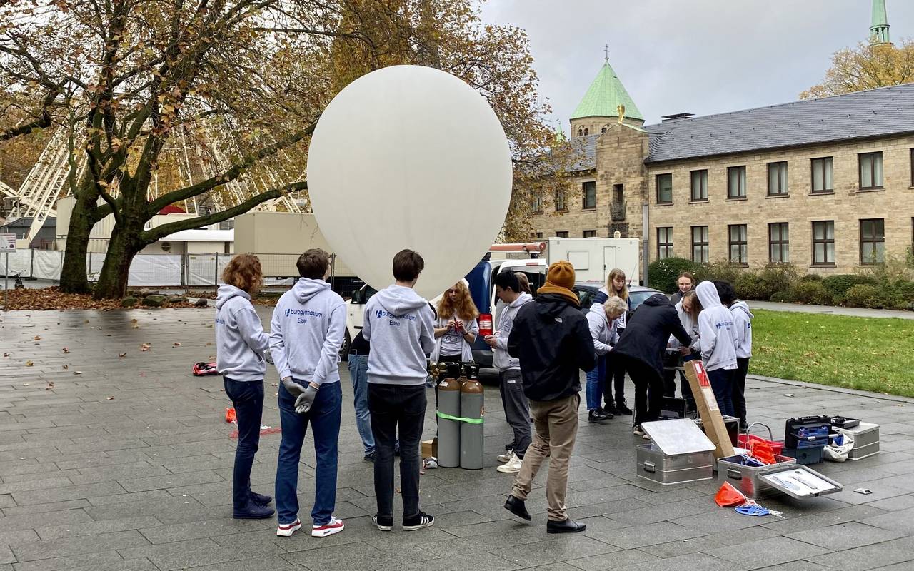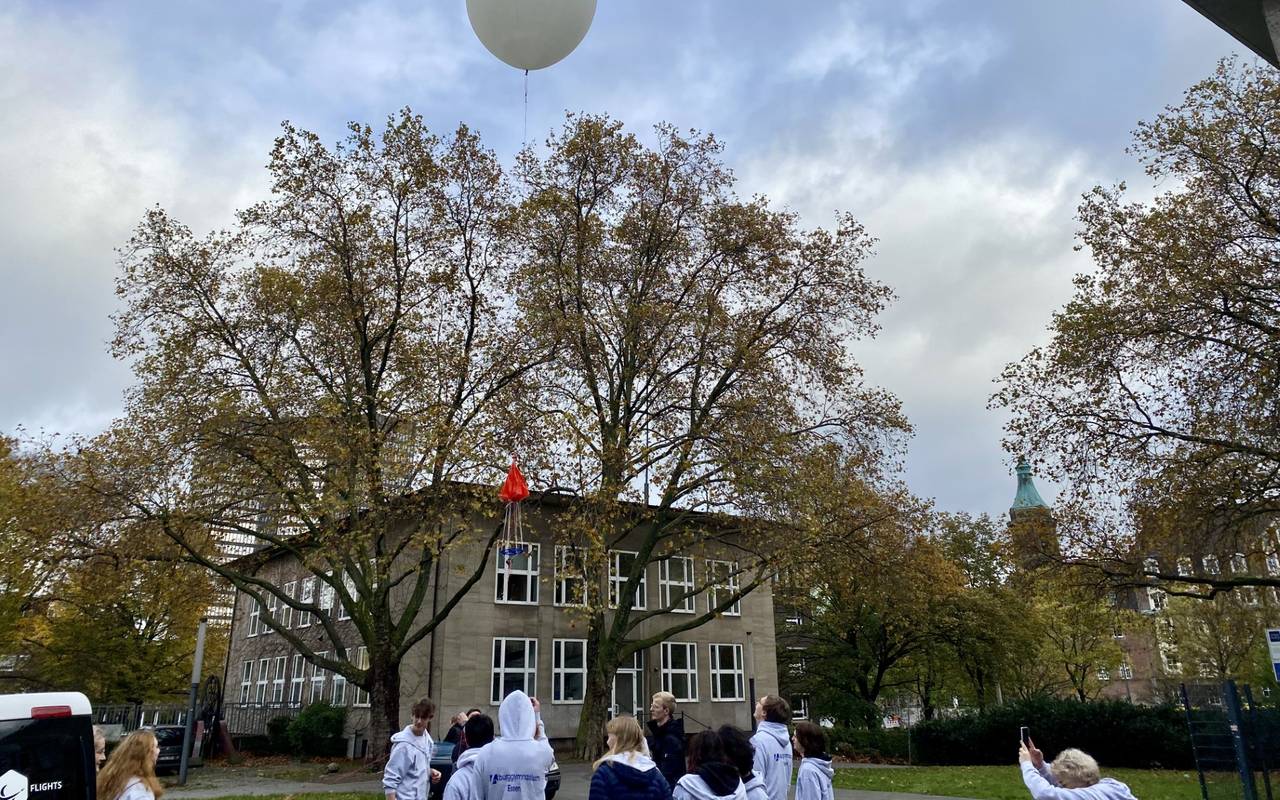 Das Burggymnasium in Essen hat am Mittwoch (15.11) einen heliumgefüllten Wetterballon in den Himmel geschickt. Dort soll der Ballon Messdaten und Videomaterial aufnehmen, damit Schülerinnen und Schüler diese im Unterricht auswerten können.