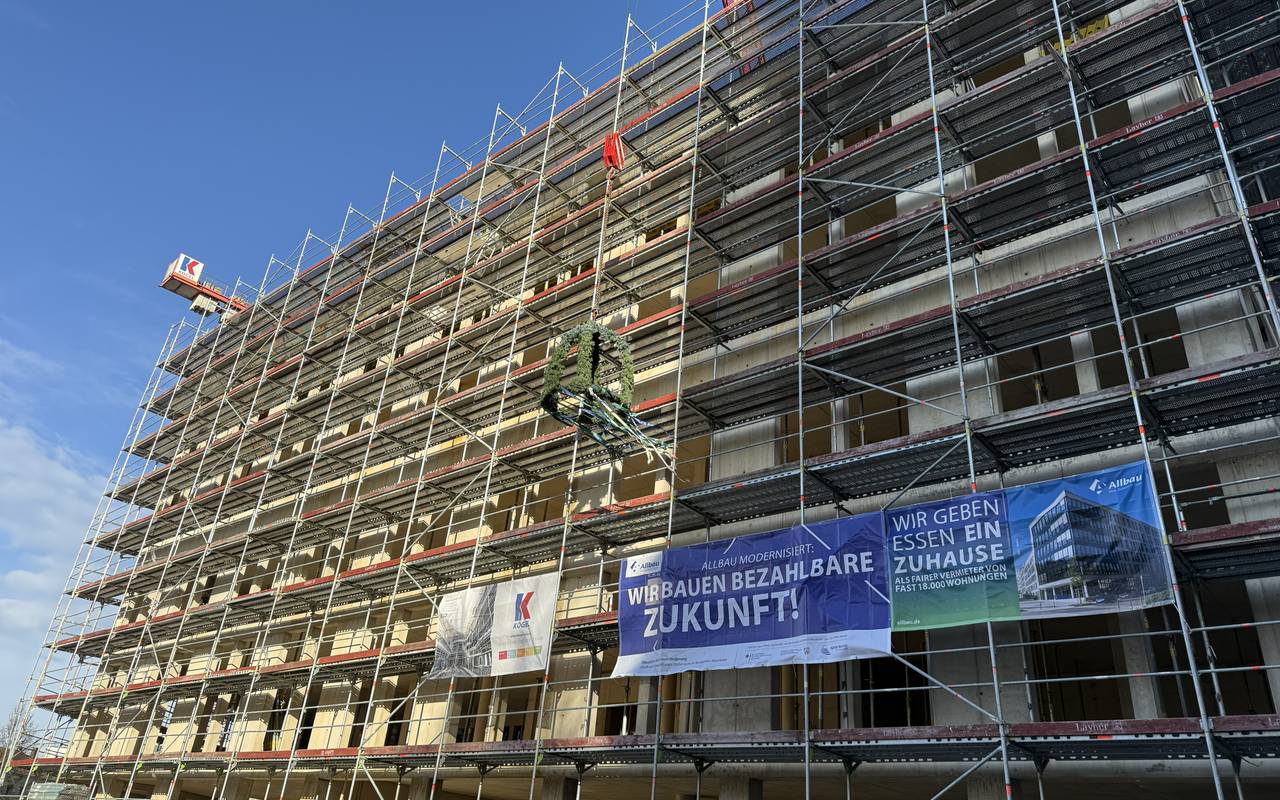 Der Rohbau für das neue Gebäude auf dem Weberplatz steht. Damit wurde ein neuer Meilenstein erreicht. Das Dach wird in den nächsten Wochen fertig. Danach folgt die Fassade und der Innenausbau. Ziel ist es, im April 2027 den Schlüssel an die Nutzer des Hauses zu übergeben. Dann sollen auch die ersten Trauungen im neuen Standesamt stattfinden. Ende 2027 soll auch der Weberplatz fertig sein. Die Arbeiten am Gebäude laufen nach Plan, erzählt Dirk Miklikowski von der Allbau GmbH. Die Ziele scheinen realistisch.