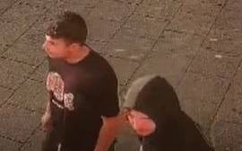 Am 30. Juli wurde eine Außenwand einer Moschee im Nordviertel mit Graffiti besprüht. Auf den Aufnahmen einer Videoüberwachung ist zu erkennen, dass sich zwei Männer am Vorabend (29. Juli) gegen 20 Uhr an der Moschee aufgehalten hatten. Während einer Schmiere stand, holte der andere eine Spraydose aus der Hose und besprühte die Wand. Nun sucht die Polizei mit Fotos nach den beiden Männern. Wenn Ihr Hinweise zu den abgebildeten Personen geben könnt, meldet Euch bei der Polizei Essen unter 0201/829-0. So sehen Sie aus: