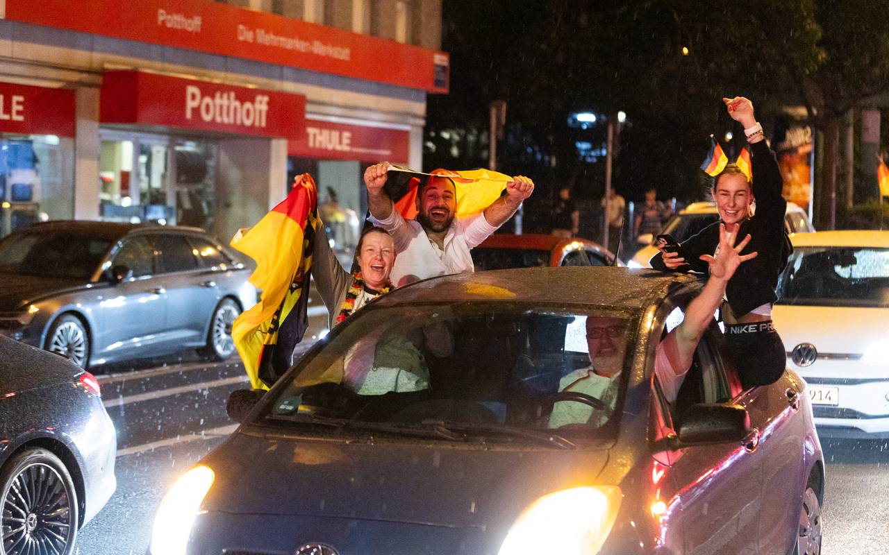 Freude in Essen nach dem Sieg der deutschen Nationalmannschaft im Achtelfinale: Am Samstagabend (29. Juni) gab es einen Autokorso - mit Pyrotechnik und Böllern.