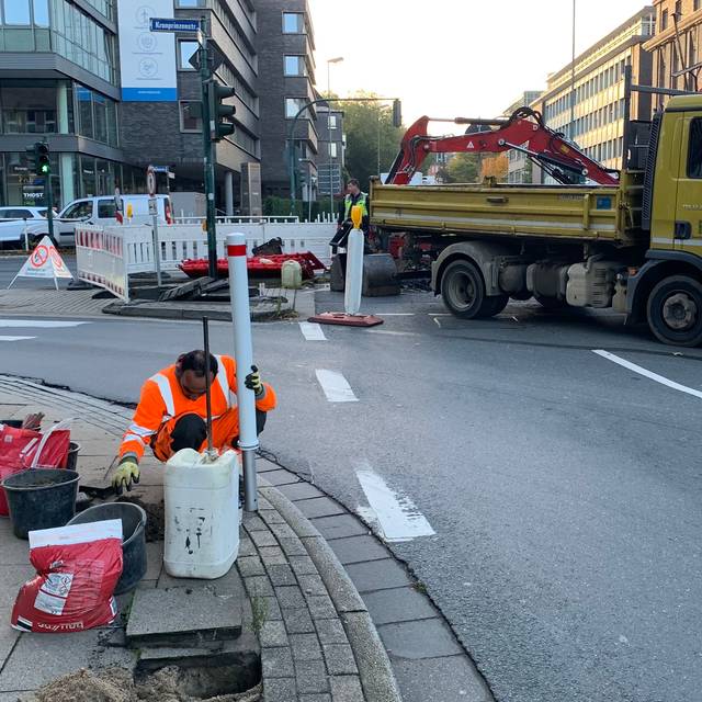 Die Ruhrallee ist stadtauswärts ab der Kurfürstenstraße gesperrt. Die Arbeiter der Stadtwerke haben ein Stück des kaputten Rohres herausgeschnitten. Das wird heute Abend noch ersetzt. Morgen zum Berufsverkehr ist dann wieder eine Spur auf der Ruhrallee frei, sagen die Stadtwerke. Die andere ist wegen der Baustelle dort ohnehin gesperrt. Vor der Einmündung von der Kronprinzenstraße in die Ruhrallee gab es heute Nachmittag zwischendurch längere Staus.
