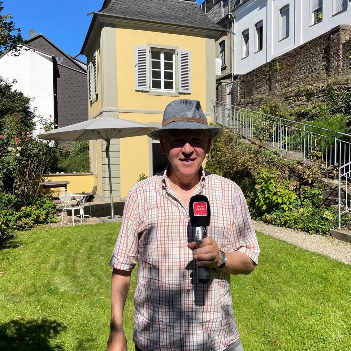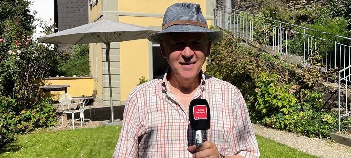 Radio Essen Stadtreporter Timm Schröder hat Peter Bankmann vom Freundeskreis Gartenhaus Dingerkus bei strahlendem Sonnenschein in Werden getroffen. Im Hintergrund plätscherte der historische Brunnen und nebenan reiften die Äpfel in dem etwas verwunschenen Garten des Hauses. Es dauerte nicht lange und der Trubel am Rande der historischen Innenstadt war vergessen.