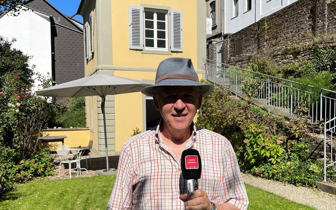Radio Essen Stadtreporter Timm Schröder hat Peter Bankmann vom Freundeskreis Gartenhaus Dingerkus bei strahlendem Sonnenschein in Werden getroffen. Im Hintergrund plätscherte der historische Brunnen und nebenan reiften die Äpfel in dem etwas verwunschenen Garten des Hauses. Es dauerte nicht lange und der Trubel am Rande der historischen Innenstadt war vergessen.