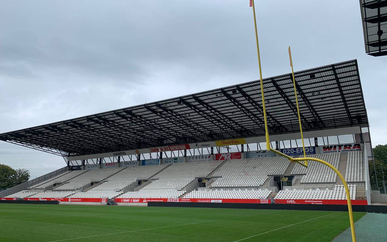 Essen ist in diesem Jahr der Austragungsort für das Finale der Deutschen Meisterschaft im American Football. Am Samstag (14. Oktober) treffen im Stadion an der Hafenstraße die Potsdam Royals auf die Schwäbisch Hall Unicorns aufeinander. Alle Infos zu den Umbauarbeiten im Stadion und zum Programm findet Ihr hier.