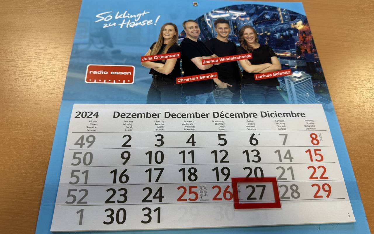 Für all diese fleißigen Helferinnen und Helfer haben wir bei Radio Essen ein Gewinnspiel vorbereitet. Wir verlosen 35 exklusive, limitierte Radio Essen-Bürokalender – ein praktisches Geschenk für alle, die ihre Zeit auch im neuen Jahr perfekt organisieren wollen.