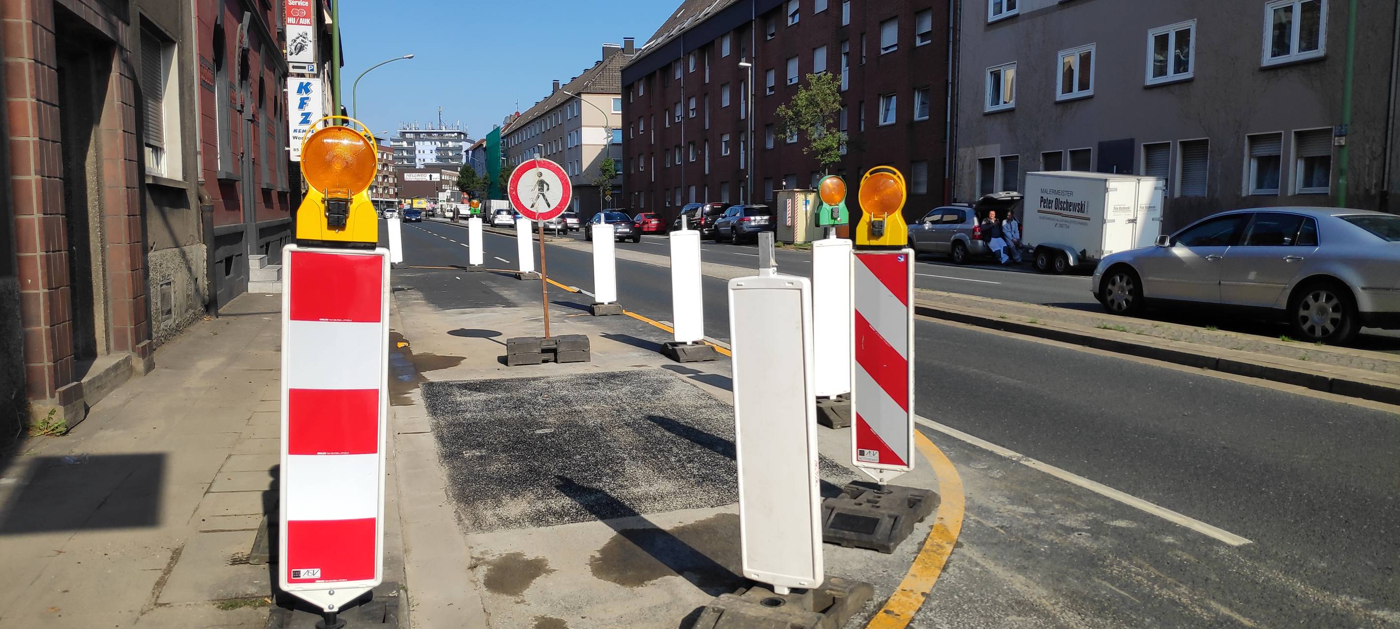 Am meisten Zeit braucht der neue Asphalt für die Gladbecker Straße. Er ist speziell für schwere LKW konzipiert und hat deshalb drei Schichten. Die müssen nacheinander trocknen. Deshalb blieb in Höhe des Berthold-Beitz-Boulevard eine Spur für mehrere Tage gesperrt.