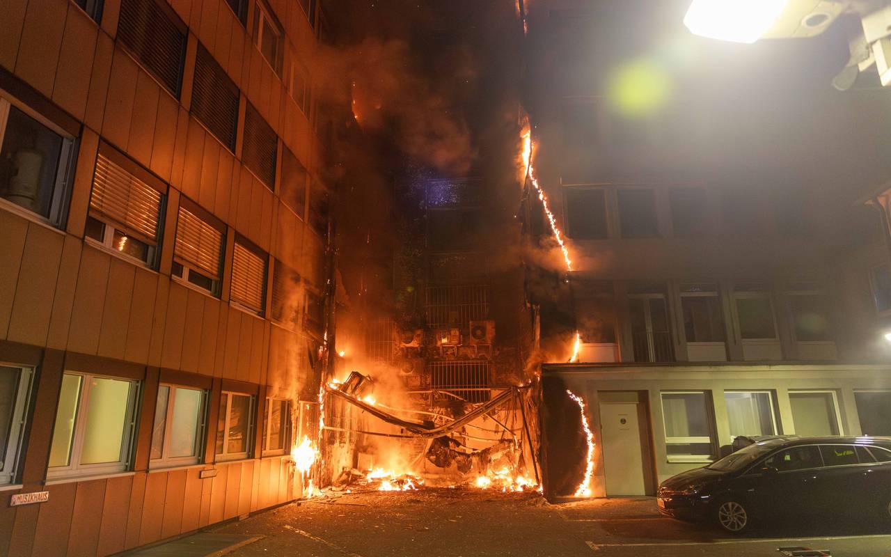 Die Feuerwehr Essen war in der Nacht zu Montag (24. Februar) im Großeinsatz. An der Lindenallee in der Innenstadt hat die Fassade an einem Geschäftsgebäude gebrannt. Gegen 1:05 Uhr wurde die Feuerwehr alarmiert. Das Feuer ist im Hinterhof an der Fassade ausgebrochen. Laut Feuerwehr gab es massive Flammen bis zum Dach des Gebäudes. Zur Bekämpfung der Flammen musste die Feuerwehr die komplette Fassade im Innenhof abnehmen. Weil im Innenhof keine Drehleiter aufgestellt werden konnte, musste die Feuerwehr von Stockwerk zu Stockwerk vorgehen. Dadurch hat das Löschen sehr lange gedauert. Die Hitze hat außerdem dafür gesorgt, dass einige Fensterscheiben zerbrochen sind. Dadurch konnte sich auch Rauch in beiden Gebäuden ausbreiten. Nachdem die Feuerwehr die Treppenhäuser und Büroräume abgesucht hatte, war klar, dass niemand mehr im Gebäude war. Verletzt wurde bei dem Großbrand niemand.