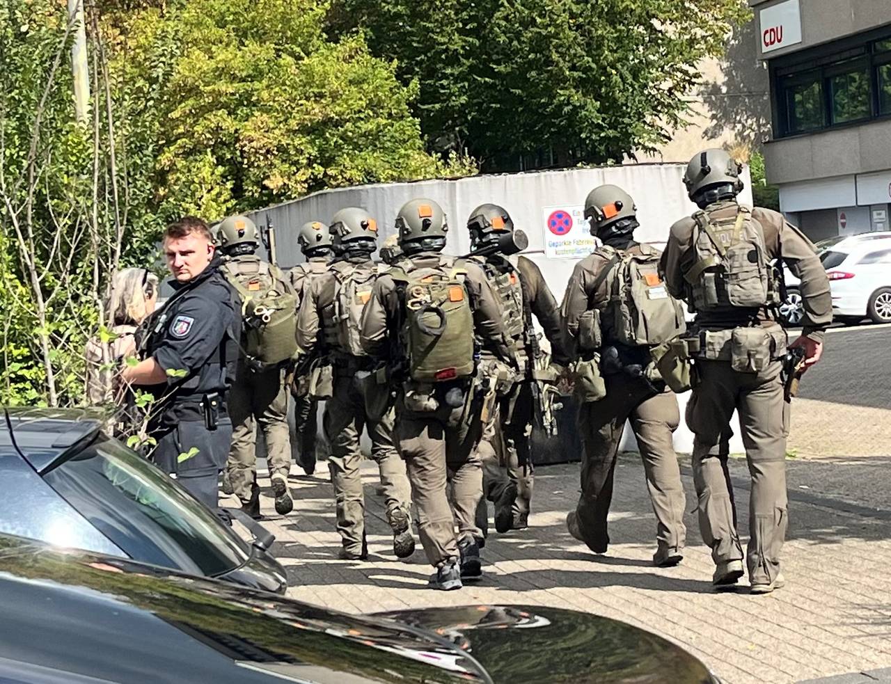 10:40 Uhr: Unser Radio Essen-Stadtreporter ist vor Ort. Der Bereich ist großräumig abgesperrt. Überall ist viel Polizei. Auch ein Helikopter kreist über das Gebiet.