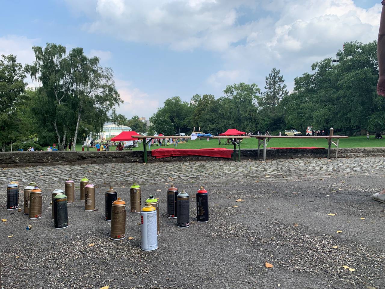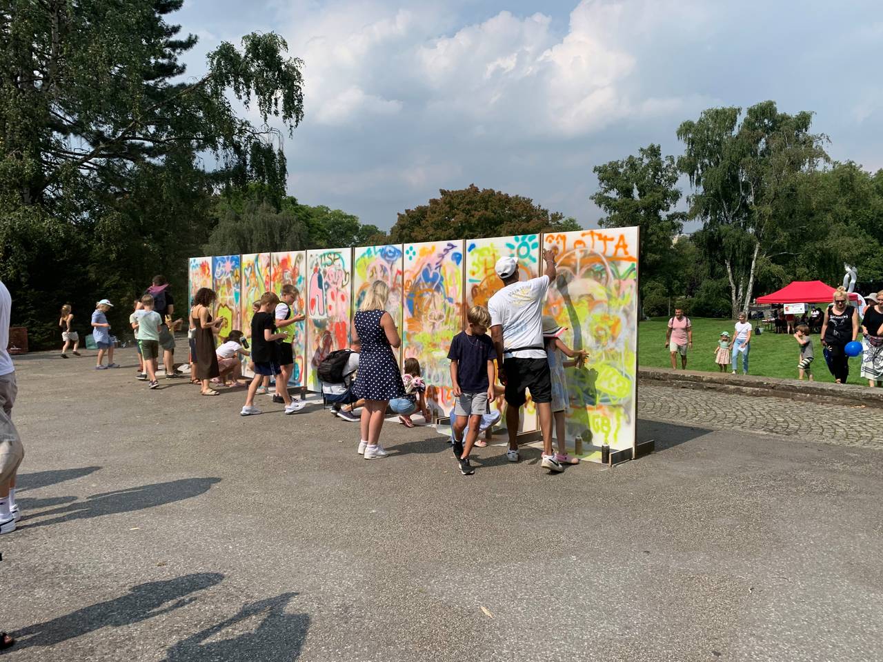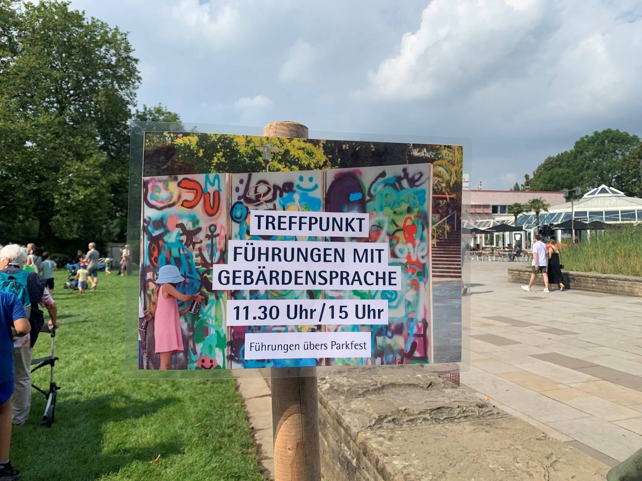 Beim Einlass war am Sonntag Geduld gefragt, die Schlangen an den Eingängen, an der Messe und an der Orangerie wurden immer länger. Unter den Besuchern waren vor allem Familien und viele Kinder. Das Programm auf dem Parkfest lässt sich kaum zusammenfassen, so viel wurde angeboten. Es gab verschiedenen Sportangeboten wie Zumba oder Tischtennis ohne Schläger, sondern mit dem Kopf. Überall gab es Workshops, beim Kölner Spielezirkus konnten die kleinen Besucher sich als Fakir ausprobieren. Auch eine weiße Streetart-Wand war aufgebaut, die war allerdings schnell bunt gefüllt. Die Veranstalter waren auch auf Inklusion bedacht, es gab den Tag über immer wieder Führungen in Gebärdensprache oder Rollstuhl-Basketball, bei dem die Besucher sich im Rollstuhl sportlich ausprobieren und die Perspektive wechseln konnten. Auch das neue Naturspielhaus war gut besucht.