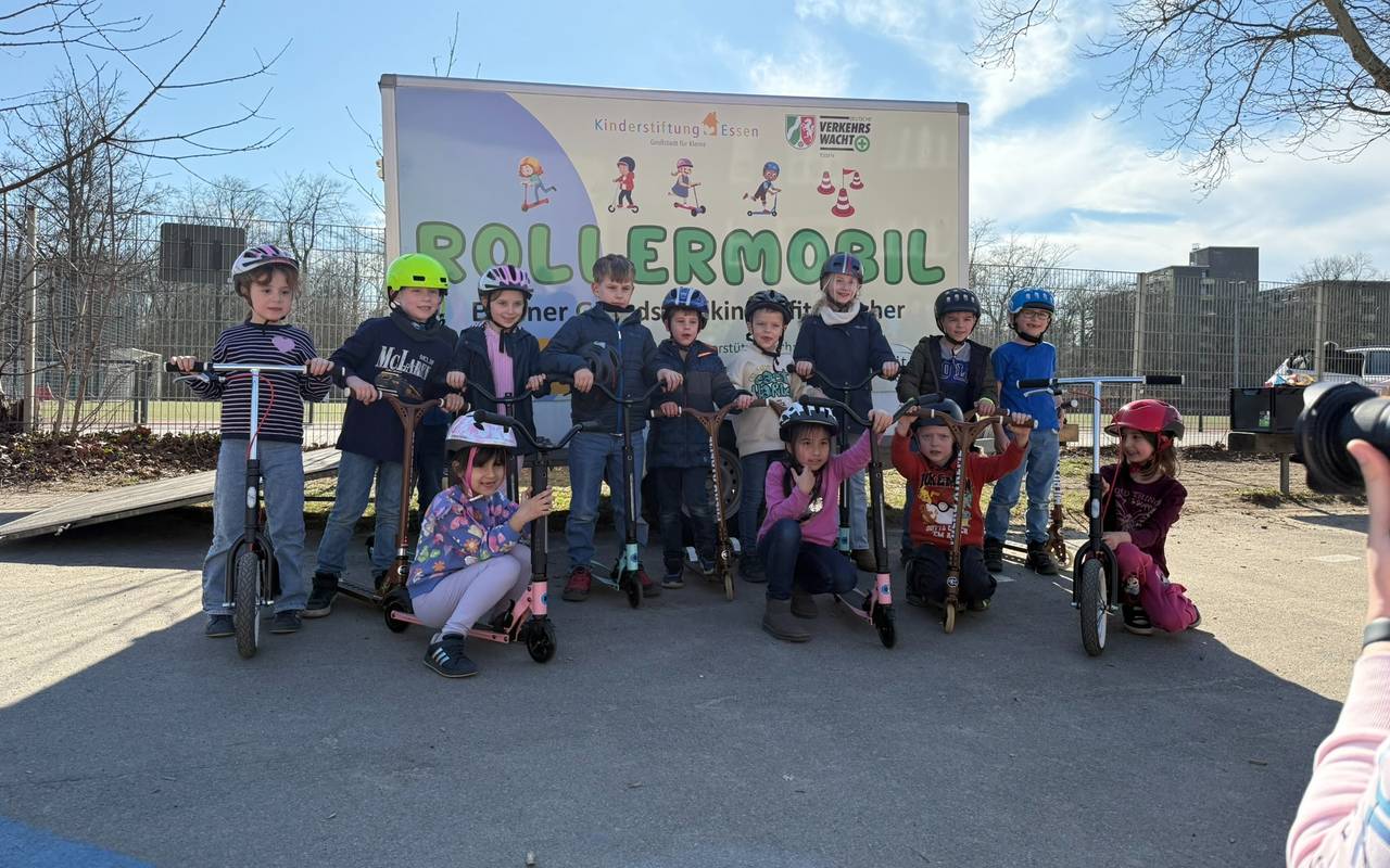 Grundschulkinder aus Essen können künftig Tretroller nutzen – und das mithilfe der Zusammenarbeit der Kinderstiftung Essen und der Verkehrswacht Essen e.V. Mit dem gemeinsamen Projekt „ROLLERMOBIL“ sollen die Kinder fit gemacht und ihre motorischen Fähigkeiten sowie ihre Sicherheit im Straßenverkehr gefördert werden. Das „ROLLERMOBIL“ ist ein Anhänger, der mit 31 Tretrollern in verschiedenen Größen, Helmen und Material für Parcours ausgestattet ist. Damit können abwechslungsreiche und herausfordernde Parcours aufgebaut werden, die die Kinder in Bewegung bringen und ihre Fähigkeiten stärken.