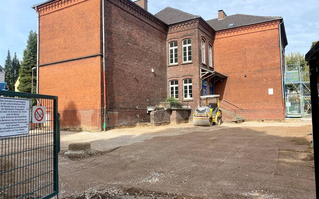 Der Schulhof der Eichendorff-Grundschule in Schönebeck ist fertig. Seit Beginn der Herbstferien wurde der Hof begradigt und neu asphaltiert. Eigentlich sollte die Baufirma längst fertig sein. Aber es gab Verzögerungen. Der Boden unter dem alten Asphalt war teilweise hohl und auch sehr matschig. Deshalb haben die Arbeiten drei Wochen länger gedauert als geplant. Etwa 200 Kinder mussten umziehen und hatten Unterricht im Gemeindehaus St. Antonius Abbas. Jetzt ist alles fertig und sie können zurück in ihr altes Schulgebäude. Die Eichendorff-Grundschule in Schönebeck hat zwei Gebäude. Nur eins, das der roten Schule, war bisher gesperrt. In dem anderen Schulgebäude lief der Unterricht ganz normal weiter.