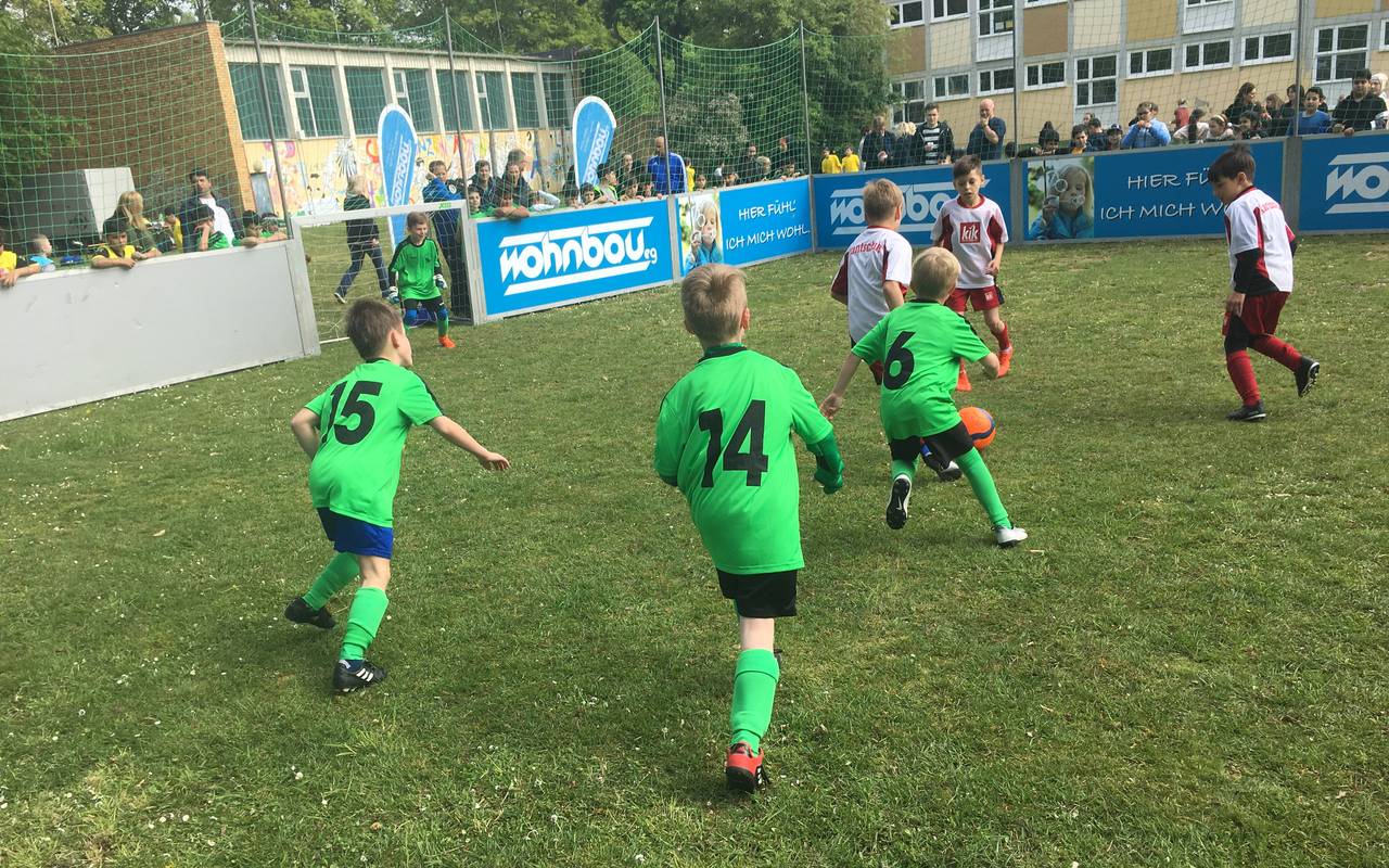 Zwölf Grundschulen aus Essen kämpfen bei den Stadtmeisterschaften um den Pokal und um 500 Euro Preisgeld. Das Endspiel ist im Stadion an der Hafenstraße - vor 15.000 Zuschauern.