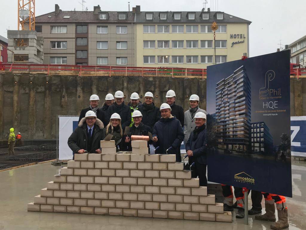 Grundsteinlegung für neues Hochhaus an der Huyssenallee im Südviertel
