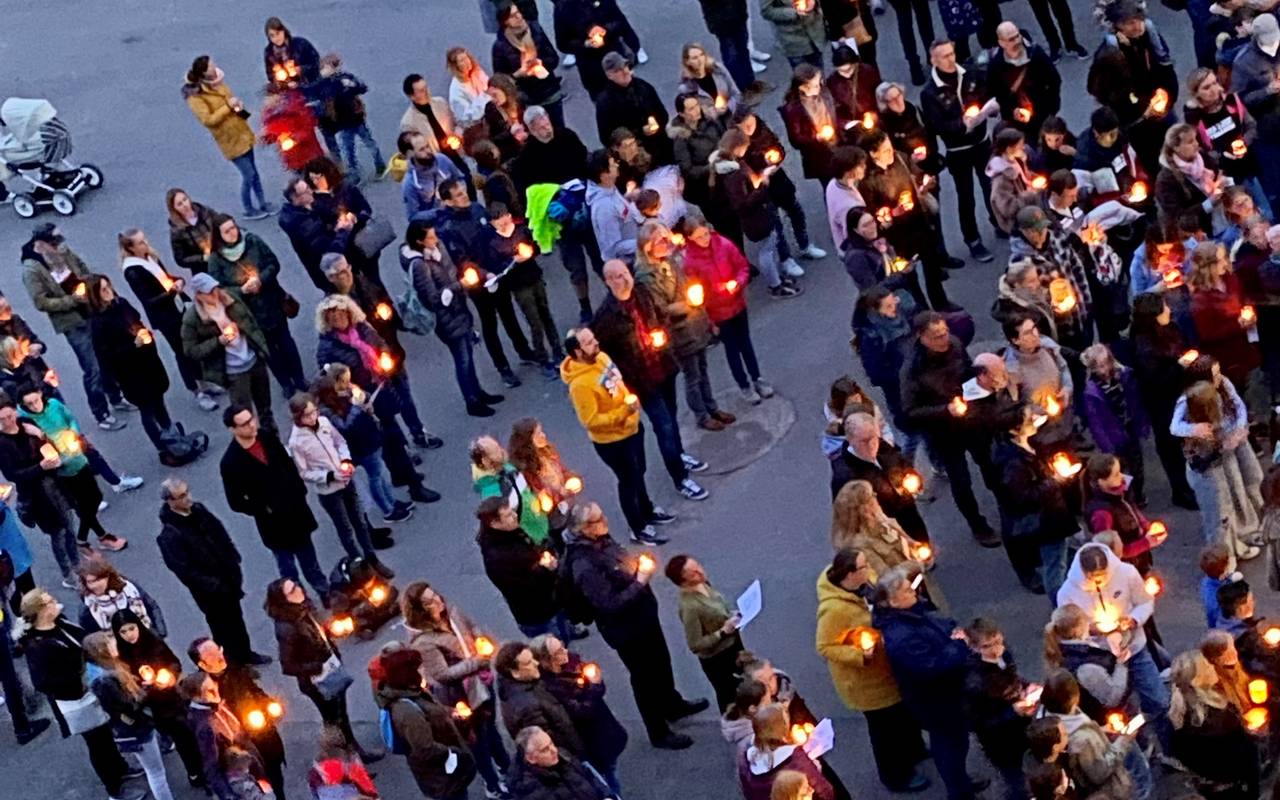 In Essen haben die Gymnasien ein Zeichen für den Frieden gesetzt. Kinder, Eltern, Lehrerinnen und Lehrer haben Kerzen angezündet und sich mit den Menschen in der Ukraine solidarisieren.