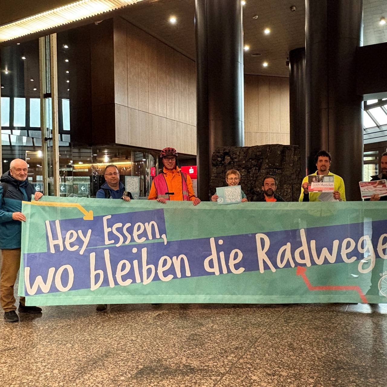 Mehr als 3000 Unterschriften wurden in Essen von den Vertretern des Bürgerbündnisses RadEntscheid an die Politiker von CDU und SPD übergeben. Die Vertreter fordern mit einer aktuellen Petition, den Beschluss des Rates zum RadEntscheid aufrecht zu erhalten. Sie kritisieren die Neuausrichtung der Verkehrspolitik von CDU und SPD. Das haben sie bereits mit einer Demonstration am Montag (23. April) auf der Rüttenscheider Straße deutlich gemacht. Sie fordern, dass weiter möglichst viele Straßen mit Radwegen ausgebaut werden. Die Luft soll sich verbessern, wenn immer mehr Menschen mit dem Rad oder Bus und Bahn fahren oder zu Fuß gehen. Welche Forderungen den Vertretern vom RadEntscheid am wichtigsten sind, das erklärt Roman Ebener im Interview mit Radio Essen-Stadtreporterin Anna Bartl.