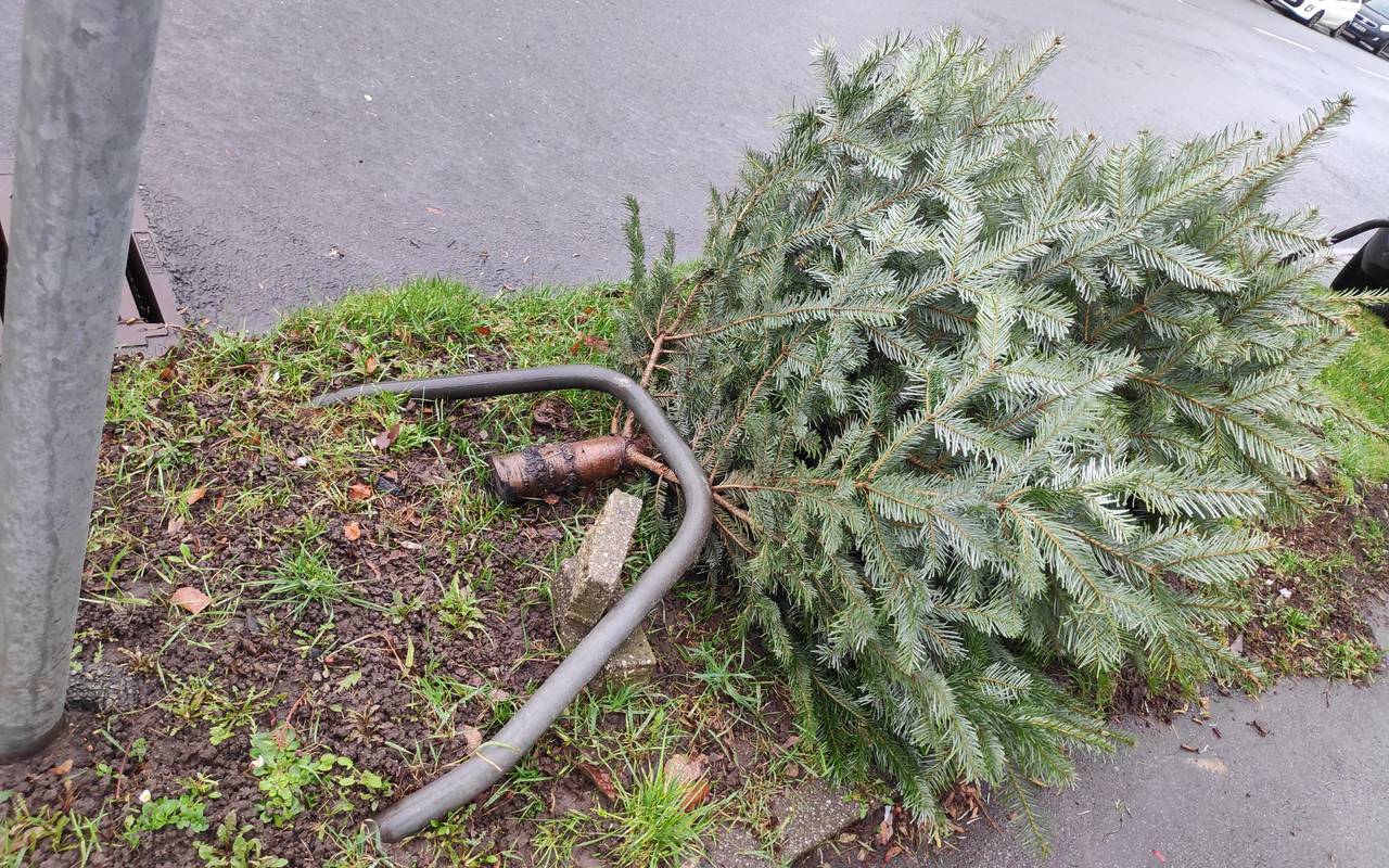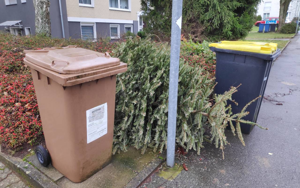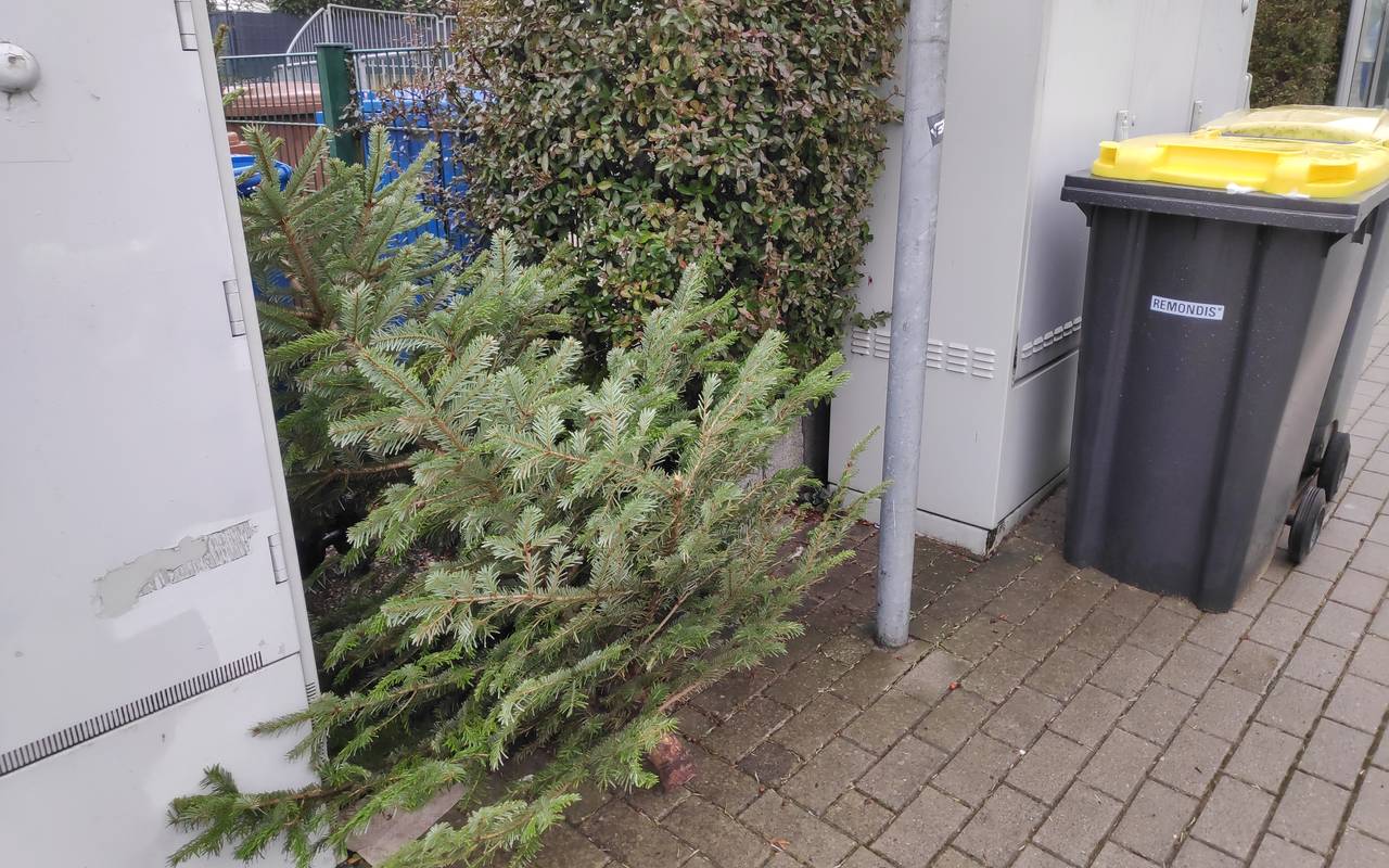 Heisinger klemmen Tannenbäume zwischen Mülltonnen