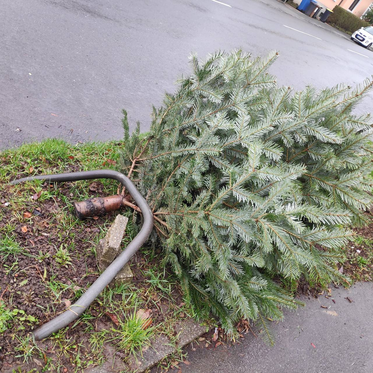 Heisinger haben einen Tannenbaum zwischen dem Stromkasten und einer Hecke eingeklemmt