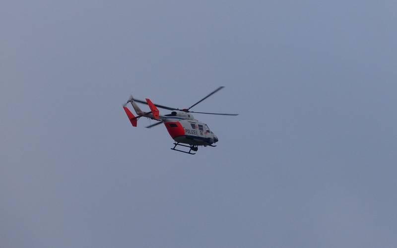 Polizeihubschrauber fliegt Übungsflüge über Essen
