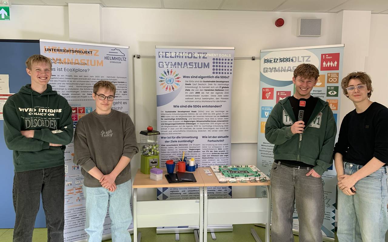 Dieses Jahr war das Helmholtz Gymnasium sehr erfolgreich. Den ersten Platz für den Klimaschutzpreis erreichten sie mit dem Schulprojekt "EcoXplore", das dieses Jahr insgesamt 18 eigene Schülerprojekte umfasst. Eine Gruppe hatte die Idee, To-go Besteck mit einem 3D-Drucker zu drucken. Auch eine App ist dabei, die spielerisch mit Nachhaltigkeit umgeht. Durch Challenges wird der eigene CO2-Fußabdruck reduziert. Eine der Aufgaben lautet „Mobil ohne Motor“. Nutzerinnen und Nutzer der App sollen eine Woche ohne Auto fahren und stattdessen mit dem Fahrrad oder zu Fuß ihre Ziele erreichen. Außerdem gibt es einen Barcode-Scanner für Lebensmittel. Dieser informiert die Nutzer über die Umweltbelastung der gescannten Produkte. Timo (17), Hannes (17), Jan (16) und Marlin (16) haben uns im Interview erklärt, worum es bei "EcoXplore" geht und wie ihre App "Earthly" von einer Idee zu einem richtigen Projekt wurde.
