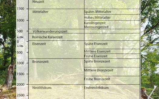 Die älteste Probe stammt demnach aus dem Jungneolithikum (ca. 4400-3400 v. Chr.), drei Proben datieren in die mittlere Bronzezeit (ca. 1600-1200 v. Chr.) und zwei Proben in die späte Eisenzeit (ca. 350 v. Chr. bis zur Zeitenwende). Lediglich eine Probe weist ein nachchristliches Alter auf und kann in die Römische Kaiserzeit (ca. die ersten vier Jahrhunderte nach Christi Geburt) datiert werden. Die Probe stellt damit auch das jüngste bestimmte Alter dar.