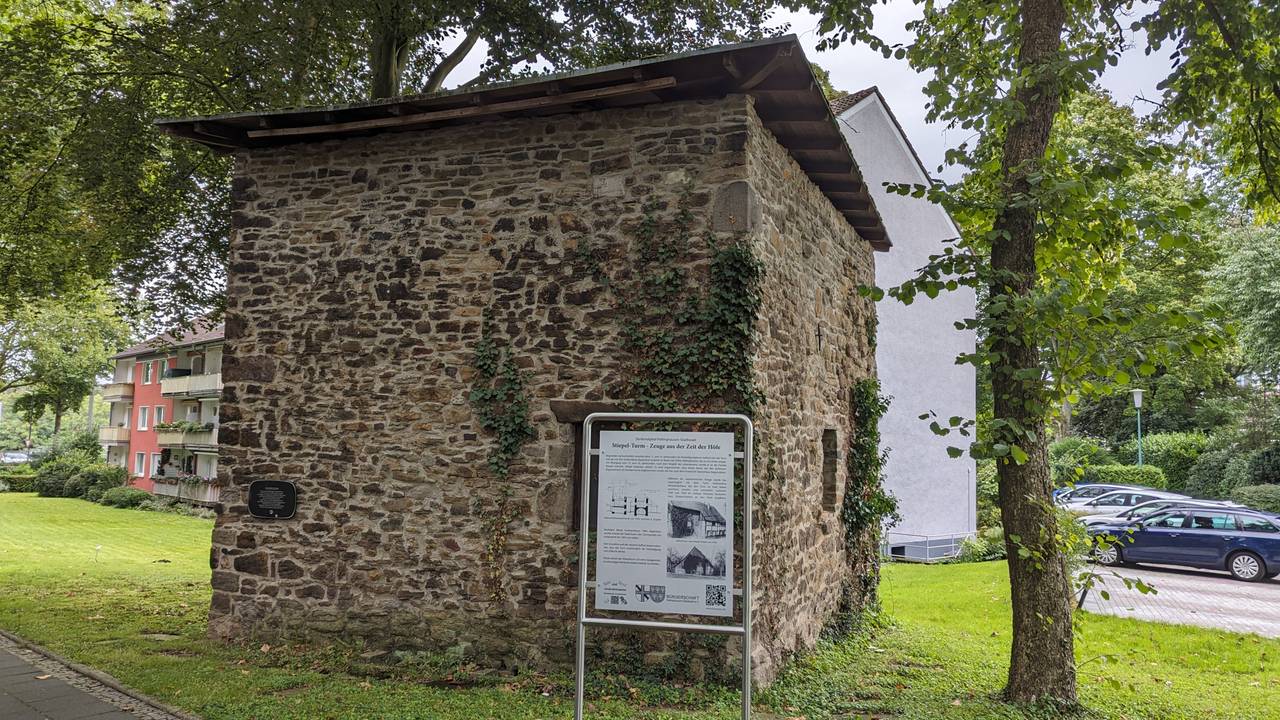 Durch die Altstadt von Rellinghausen und zwischen vielen Fachwerkhäusern geht es zum Ziel - den Blücherturm. Dort ist heute der Sitz der Bürgerschaft. Die Geschichte des Wehrturms wurde 1567 zum Gerichtsturm umgebaut und deckt damit ein dunkleres Kapitel der Stadtteilgeschichte ab. Da begannen damals die Hexenprozesse. Nach der Hexentaufe kamen die angeblichen Hexen zum Gerichtsturm und wurden unten ins Verlies gesperrt. Später wurde am Schillerplatz das Urteil vollstreckt. Wie Sven Milpur erzählt, sind damals nachweislich 42 Leute ums Leben gekommen. Heute soll der Ort aber mehr Freude bringen.