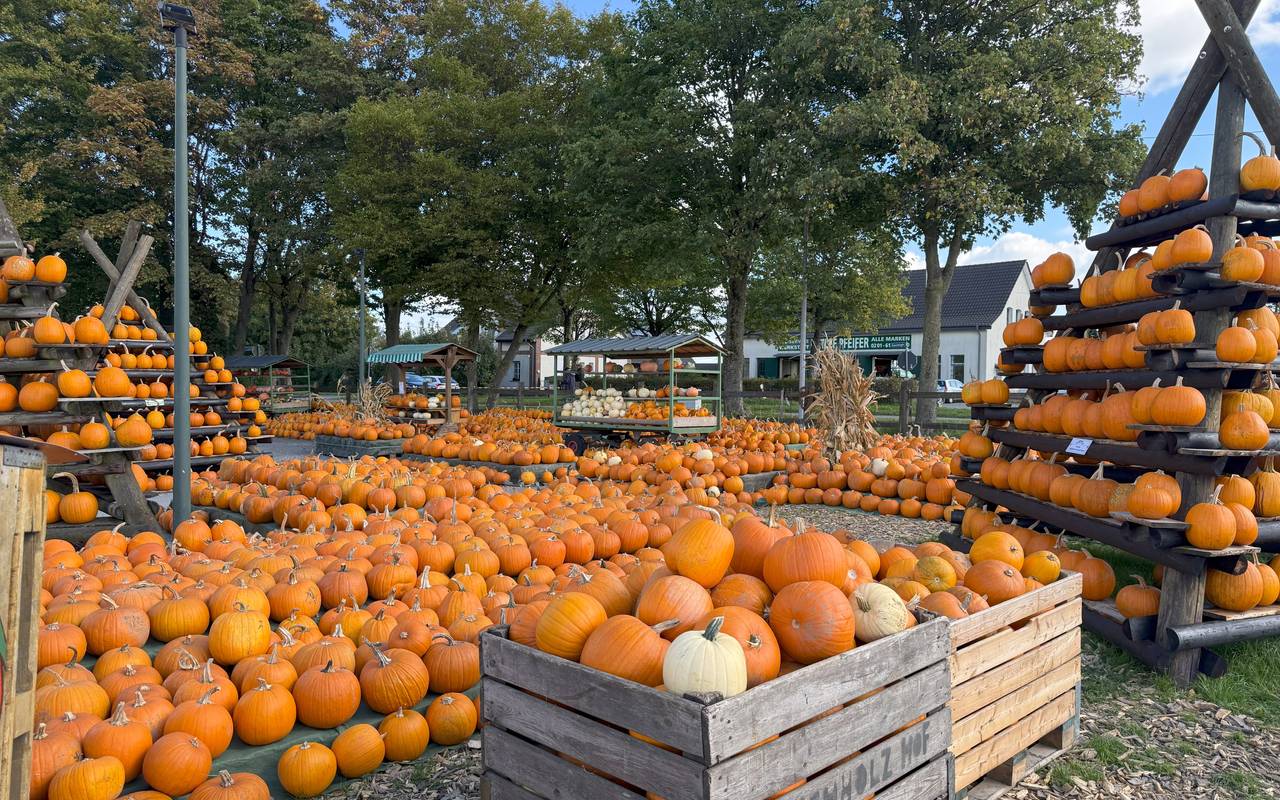 Auf dem Buchholz-Hof in Essen-Kettwig findet auch dieses Jahr wieder das Kürbisfest statt. Zwischen 20.000 und 25.000 Kürbisse stehen noch bis zum 05. Oktober 2025 auf dem Bauernhof für Euch bereit. Zierkürbisse und Hokkaidokürbisse bis hin zum klassischen Halloweenkürbis sind zu sehen und können zum Kochen, Schnitzen oder einfach für das Foto genutzt werden.