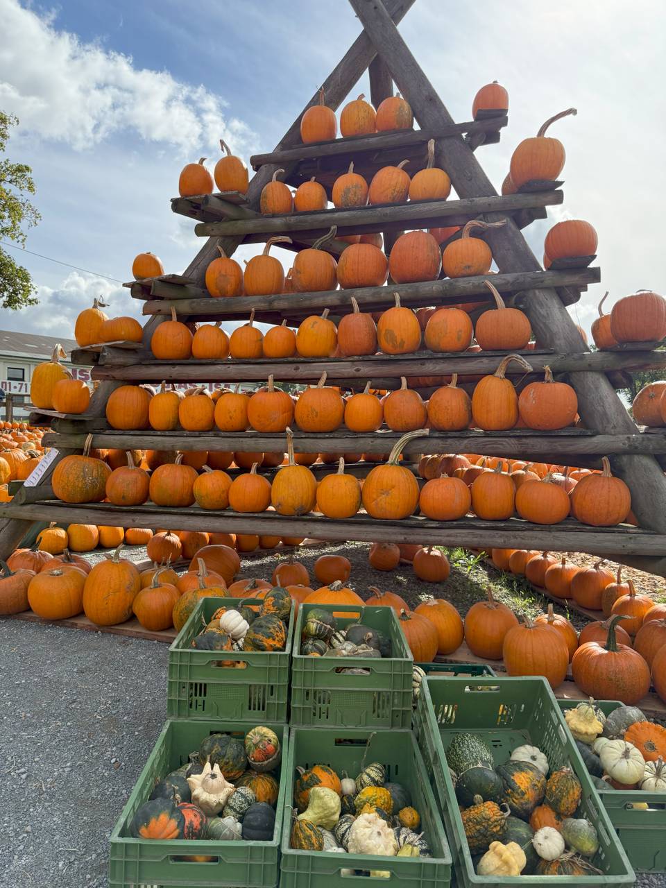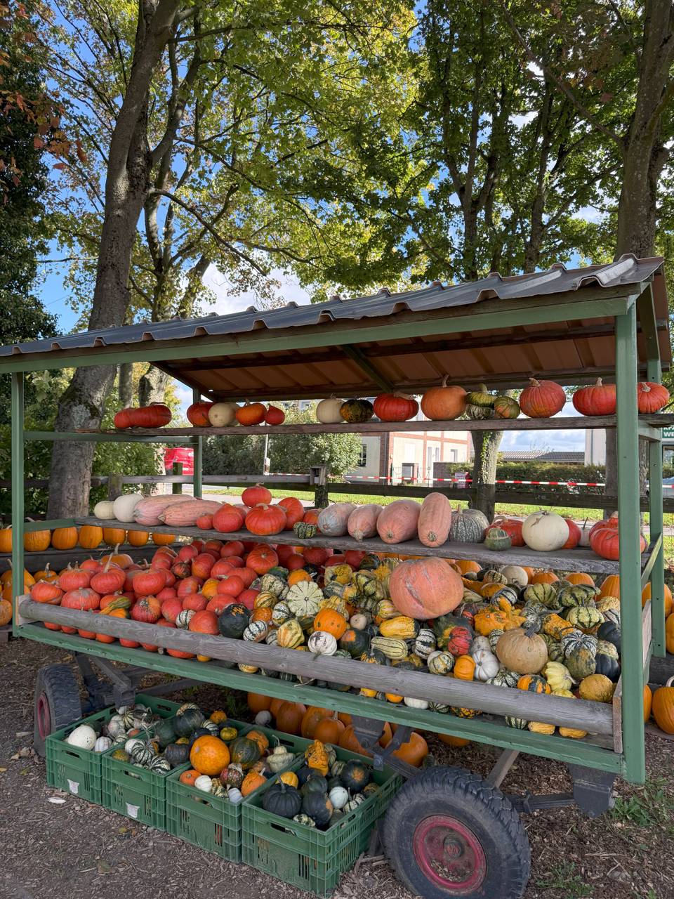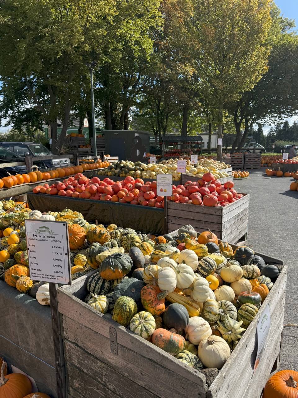 Über 20.000 Kürbisse sind auf dem Hof aufgebaut, viele liegen noch auf den Feldern und warten darauf, zum Hofladen gebracht zu werden. Die meisten Kürbisse werden verkauft und am Wochenende auf dem Kürbisfest zu Kürbispuffern und Kürbissuppe verarbeitet. Viele bleiben daher nicht übrig. Wenn doch, werden sie gespendet.